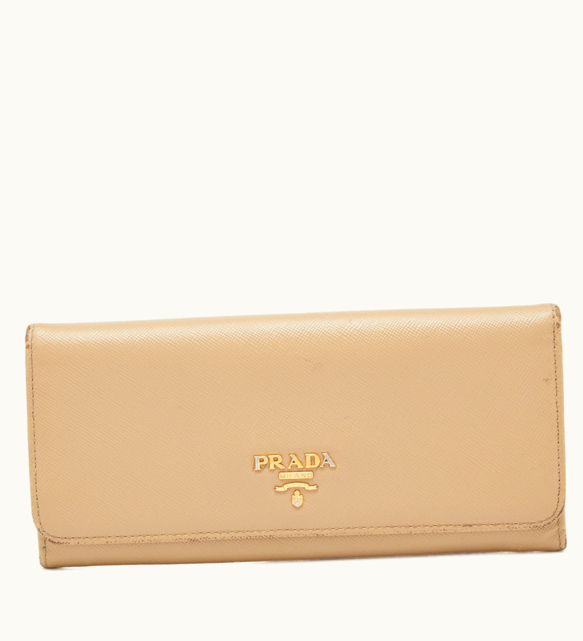Prada Beige Saffiano Leather Flap Continental Wallet | GLINT