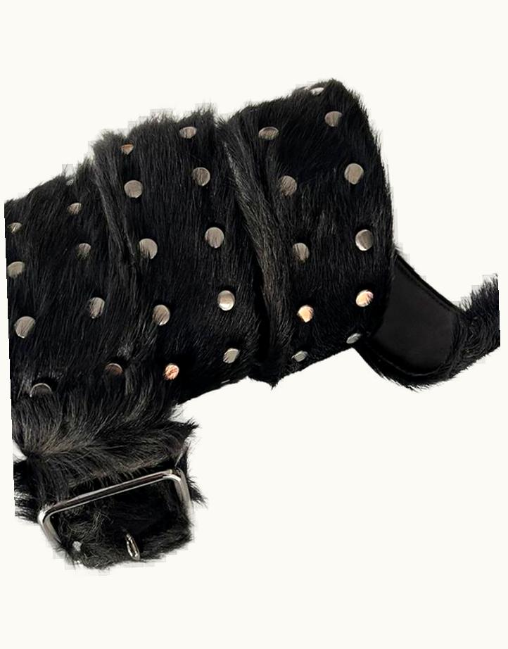 Prada Prada Black Fur Studded Belt A/W 2017