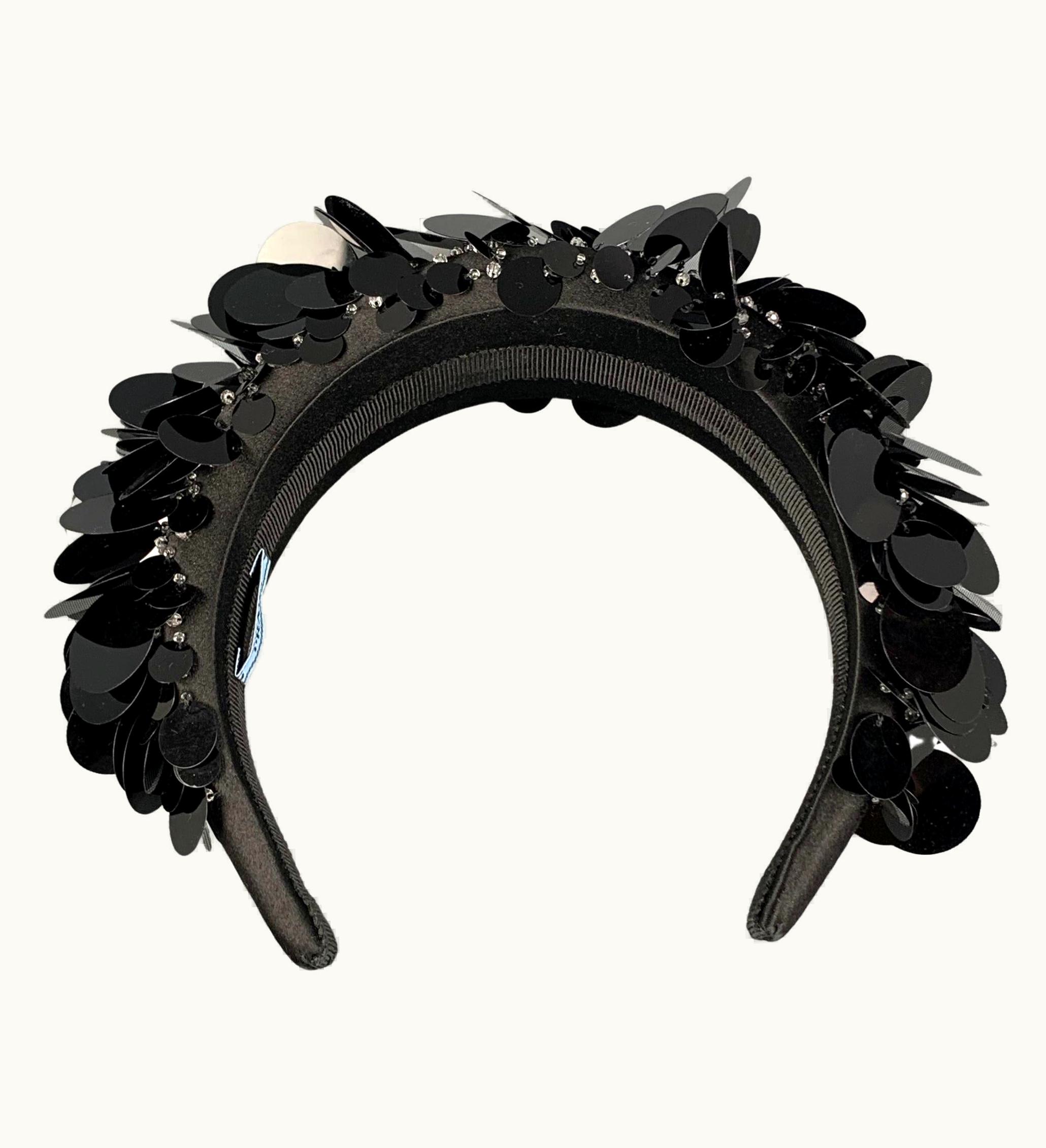 Prada Black Silk Sequined Headband | GLINT