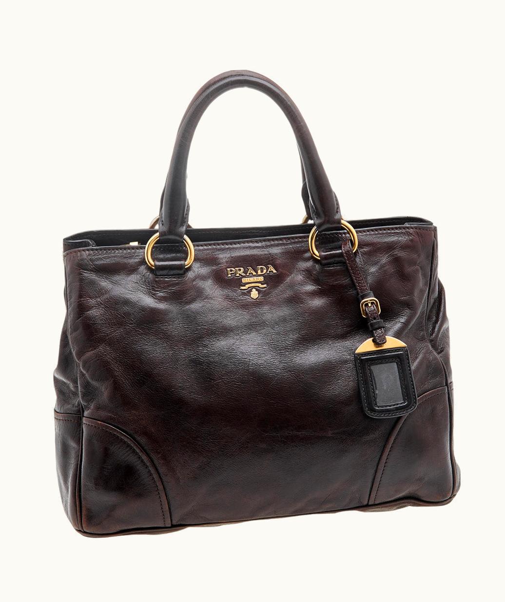 Prada Brown Vitello Shine Leather Zip Tote | GLINT