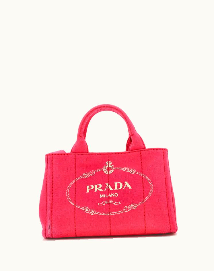 Prada Canapa Convertible Tote Canvas Mini Compact Pink | GLINT