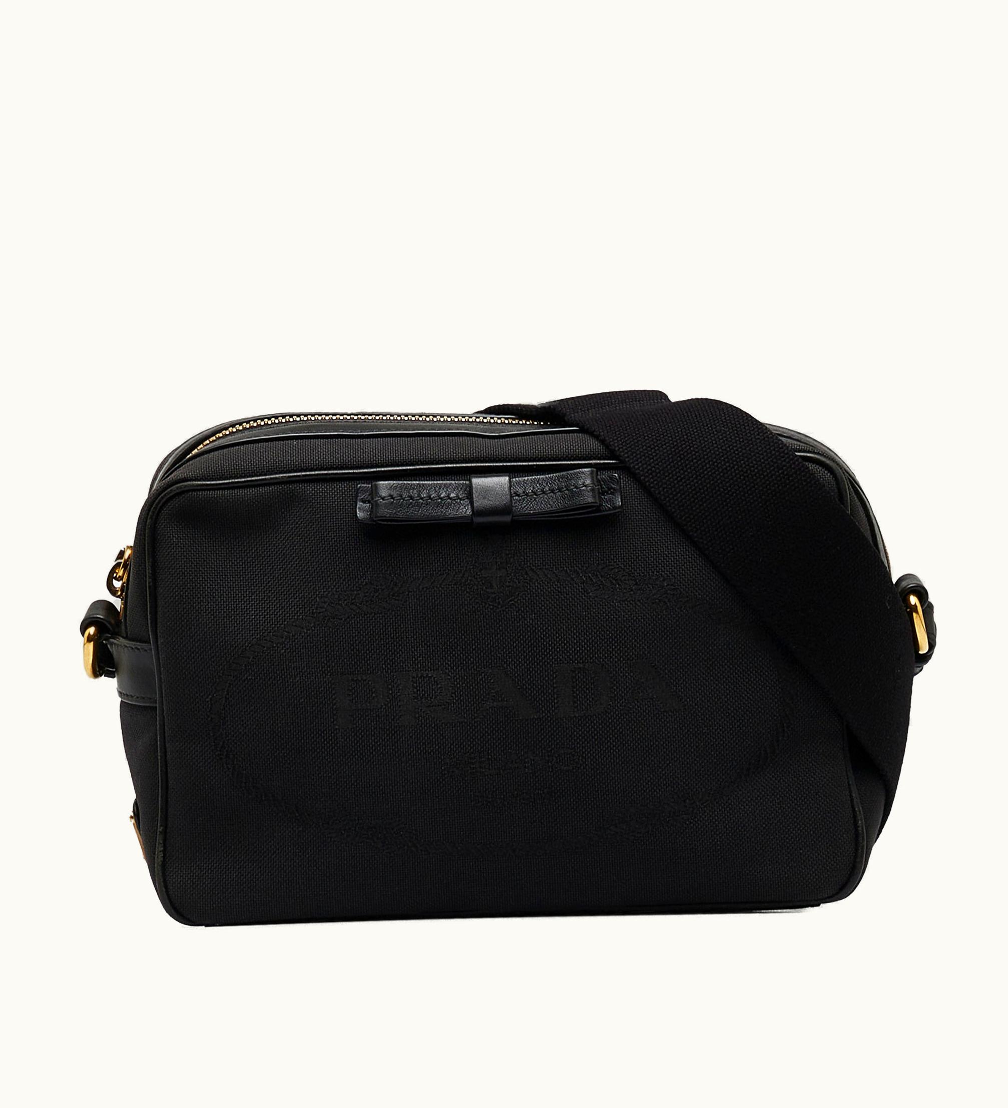 PRADA Canapa Logo Crossbody Bag - Canvas Leather Trim Adjustable Strap Zip Closure | GLINT