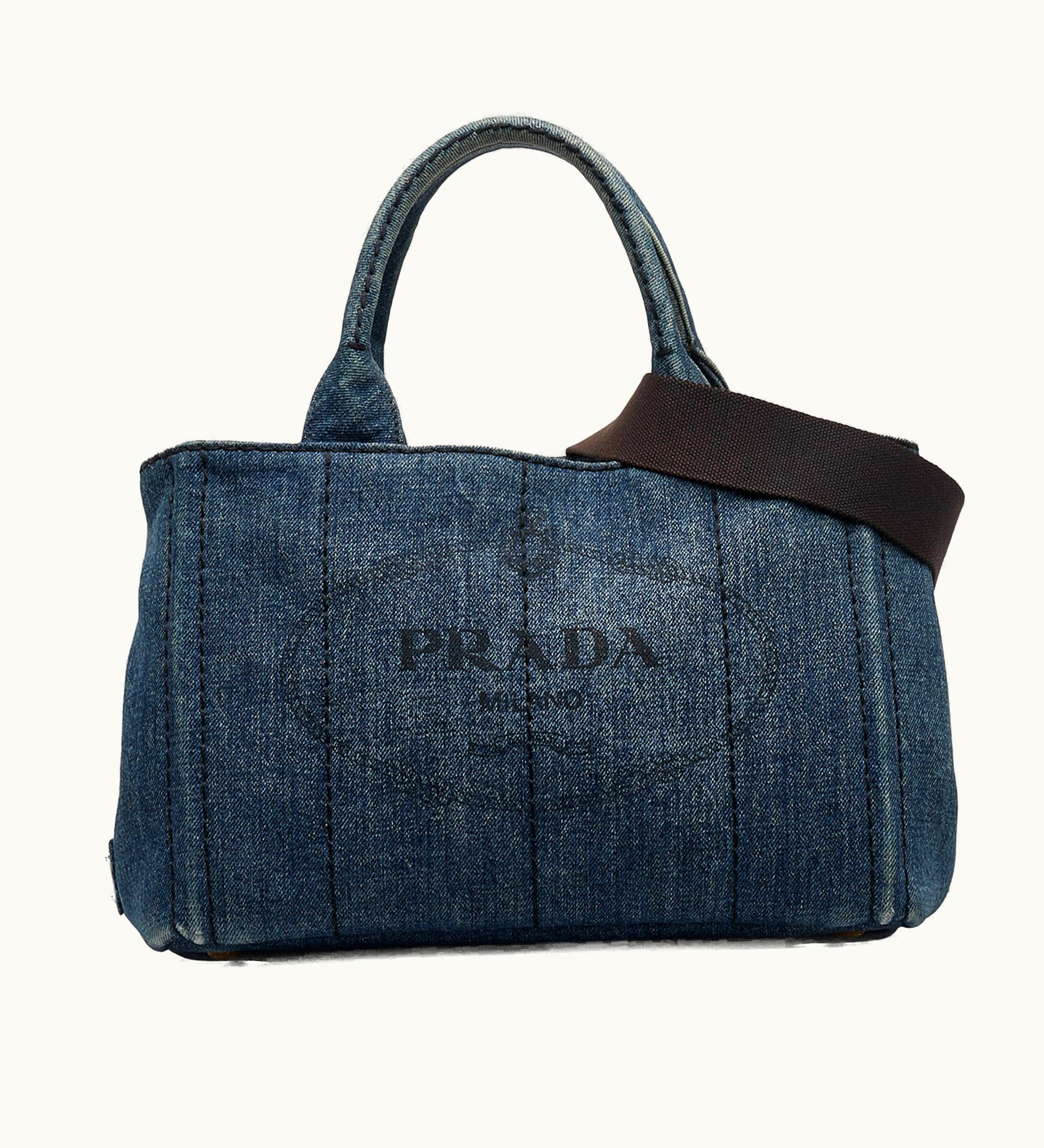 Prada Canapa Logo Denim Satchel Luxury Tote Blue | GLINT