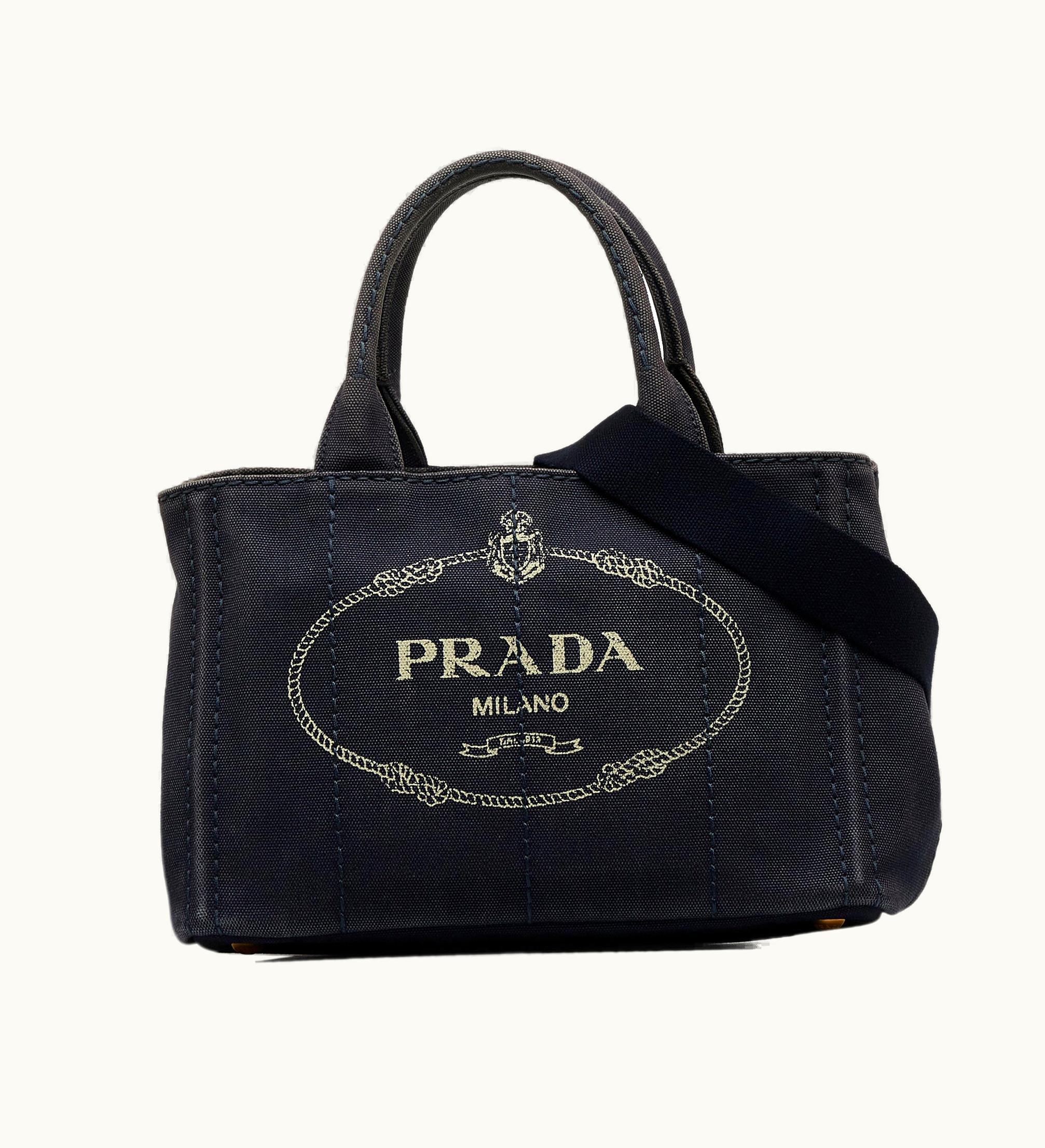 Prada Canapa Logo Satchel Canvas Luxury Handbag Black | GLINT