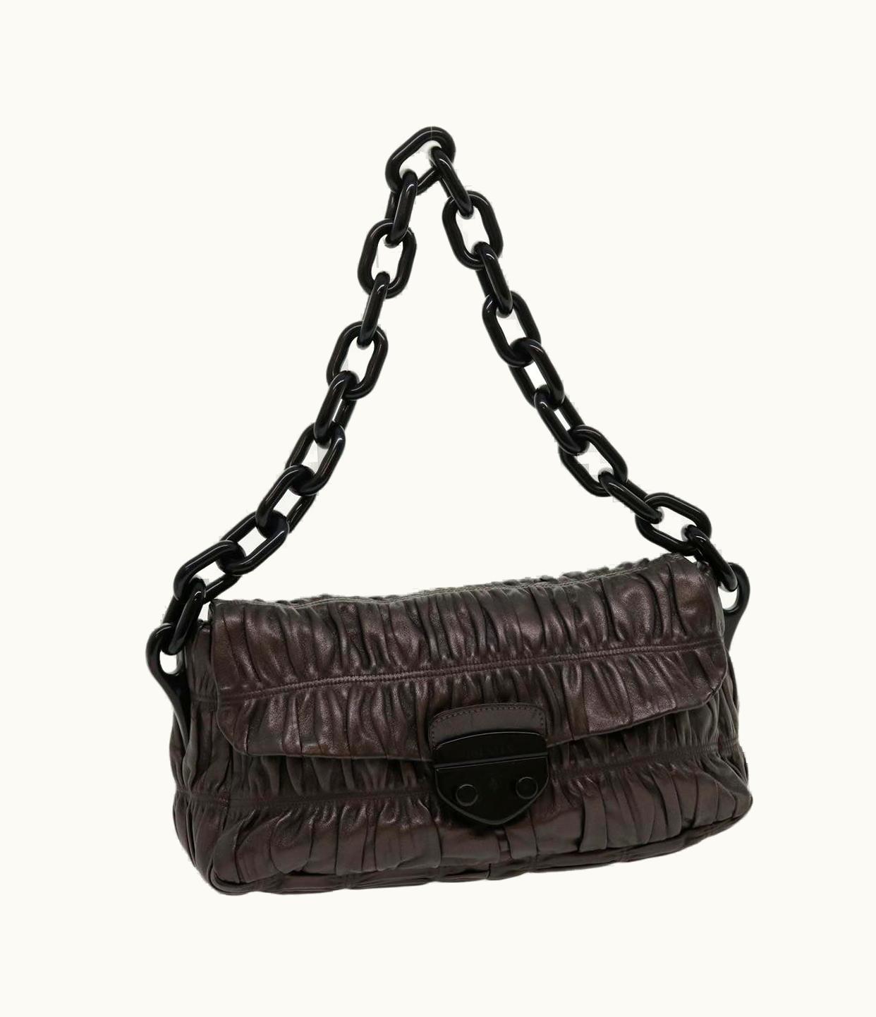 Prada Chain Shoulder Bag Leather Brown | GLINT