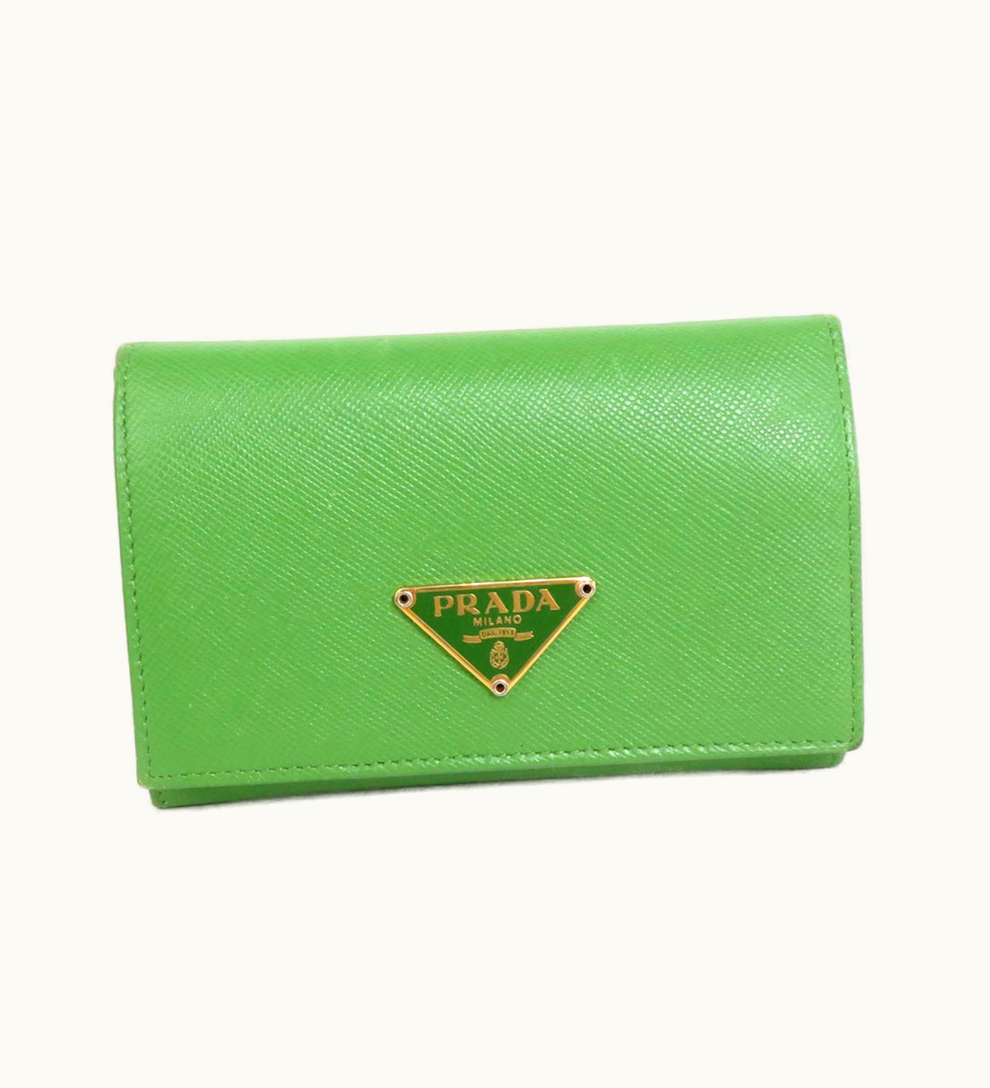 Prada Coin Case Leather Light Green Unisex | GLINT