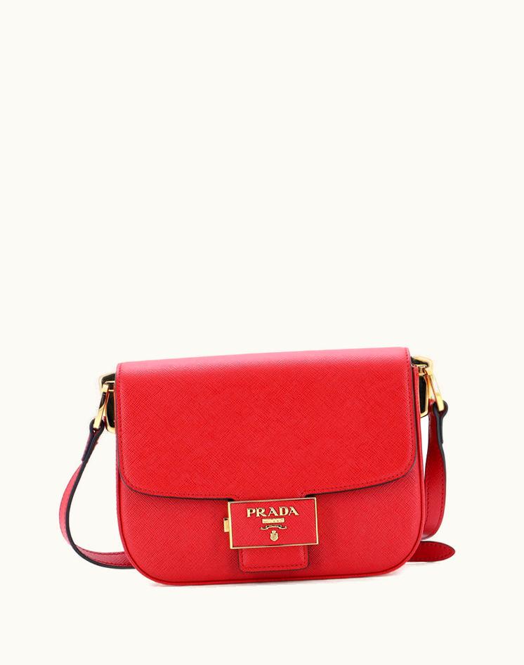 Prada Embleme Flap Bag Saffiano Leather Small | GLINT