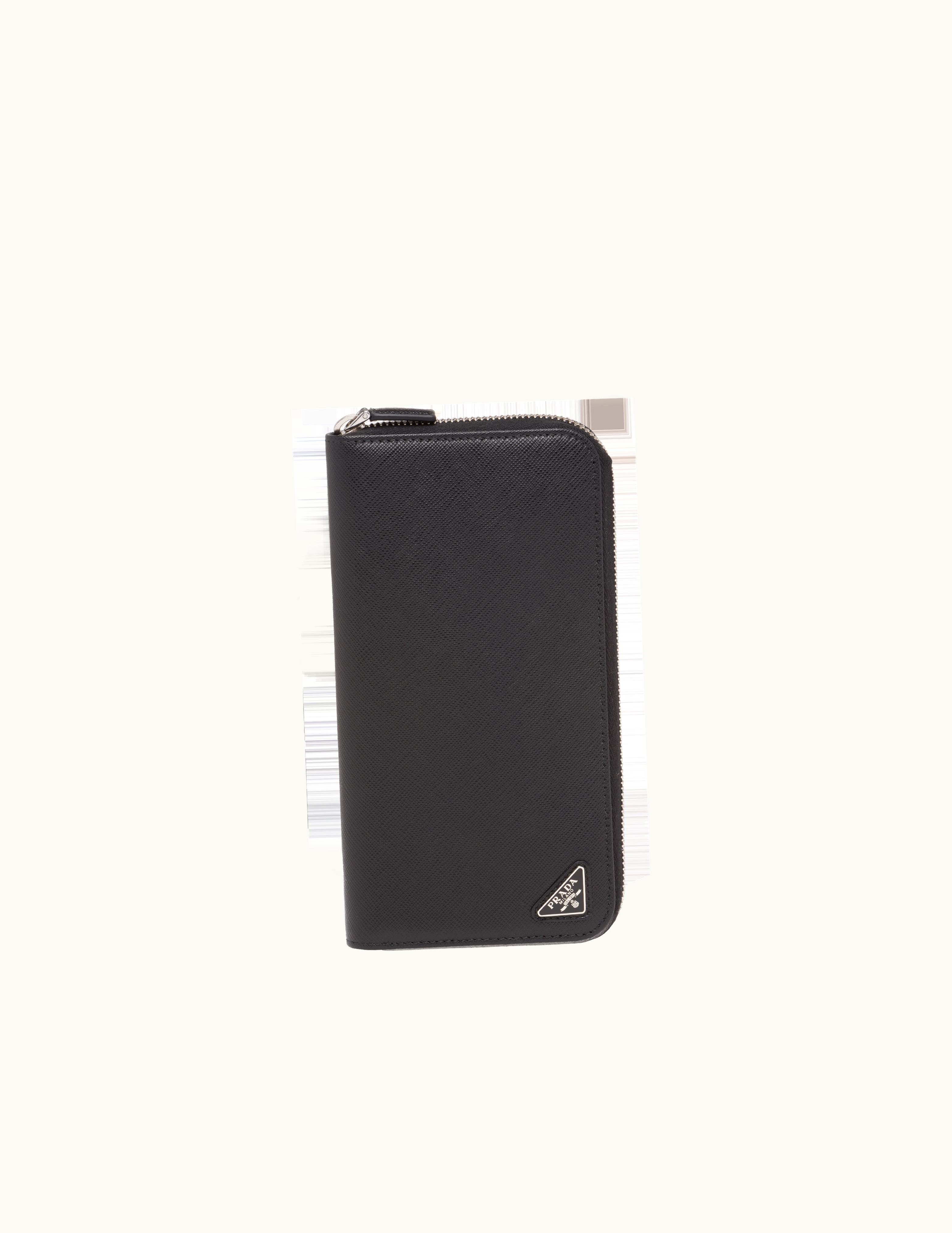 Prada Enameled Triangle Saffiano Zipper Wallet Black | GLINT