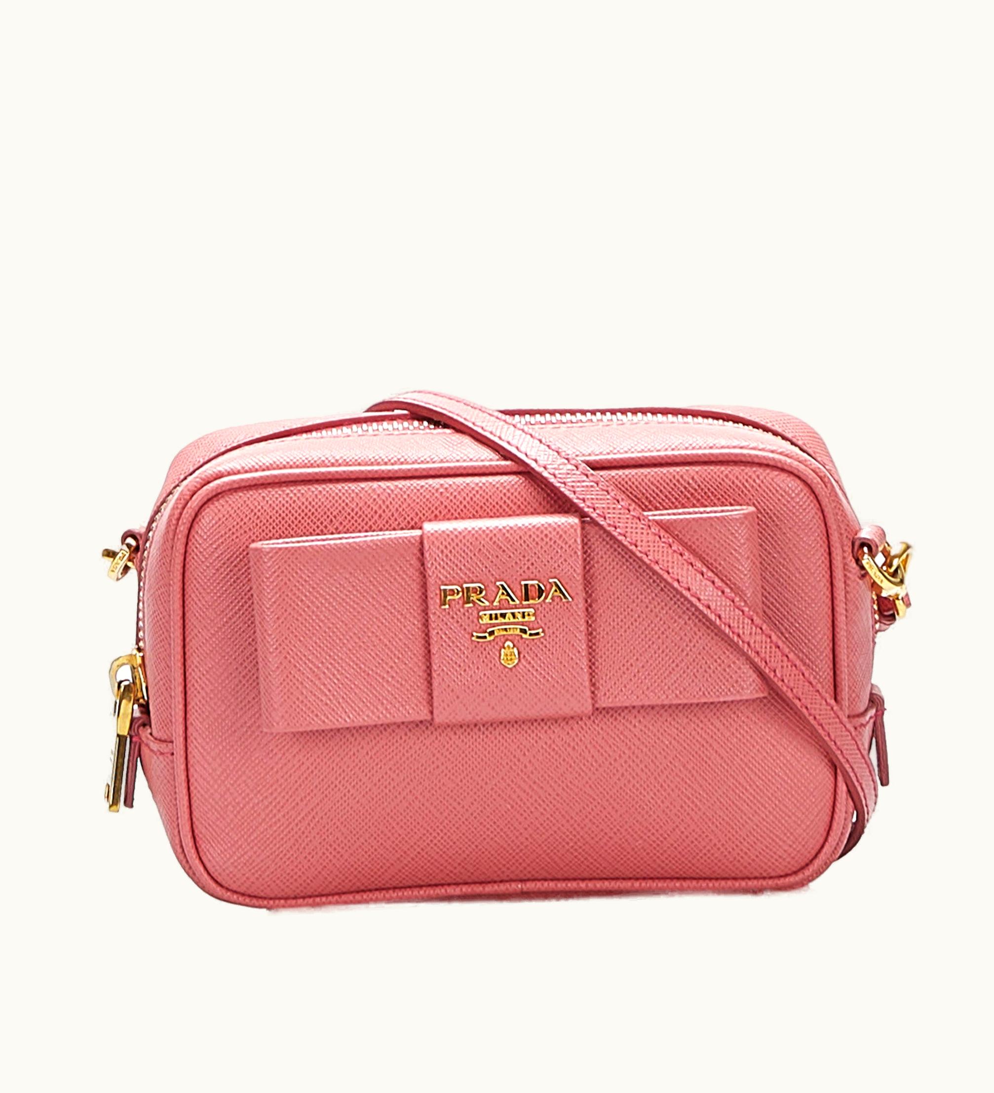 Prada Fiocco Bow Saffiano Crossbody Bag Pink | GLINT