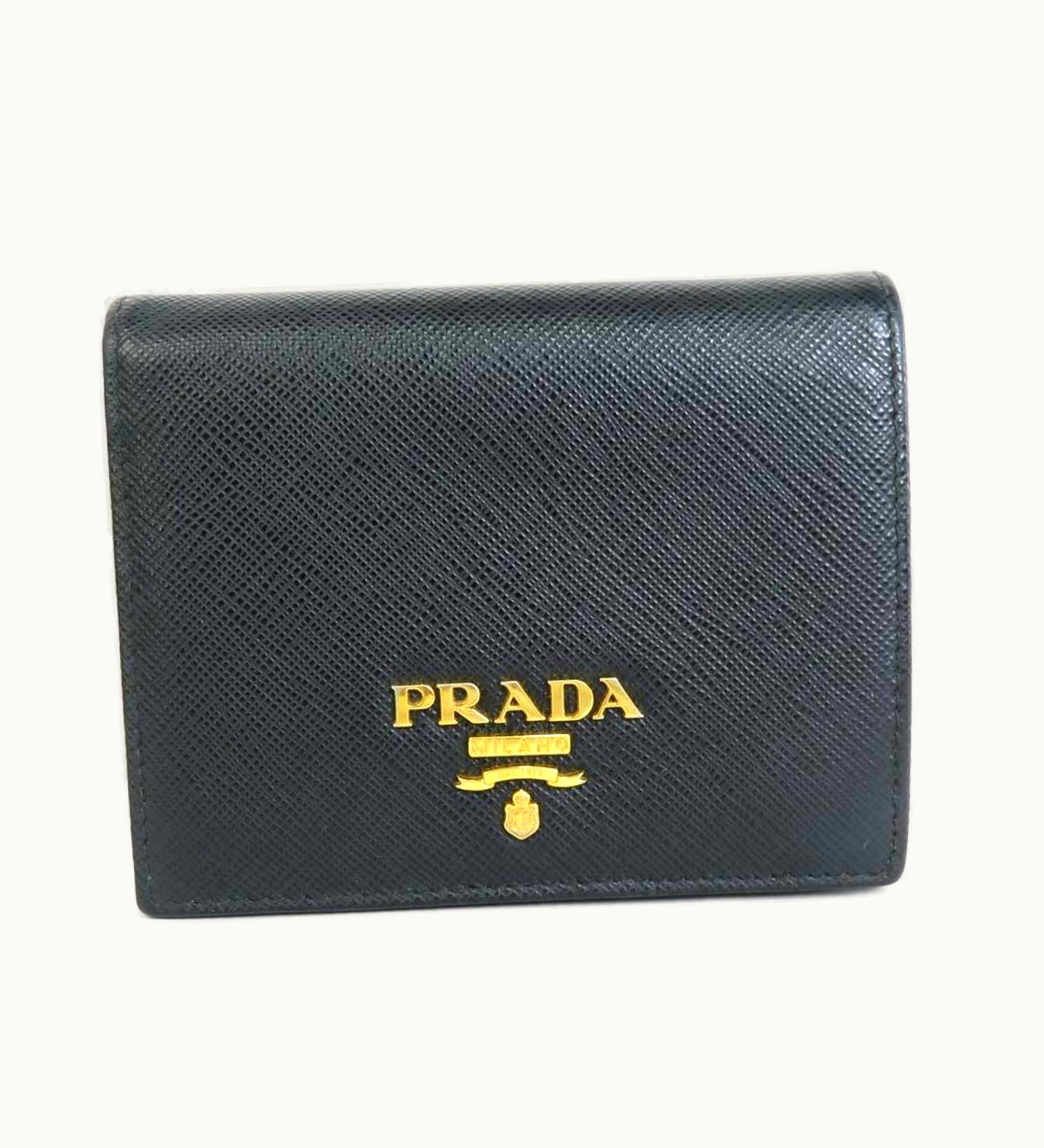 Prada Folio Wallet Leather Black 1Mv204 55188F | GLINT