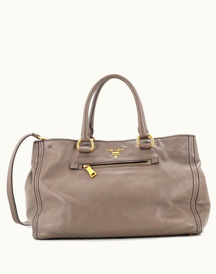 Prada Front Pocket Convertible Tote Soft Calf Large Leather Gray | GLINT