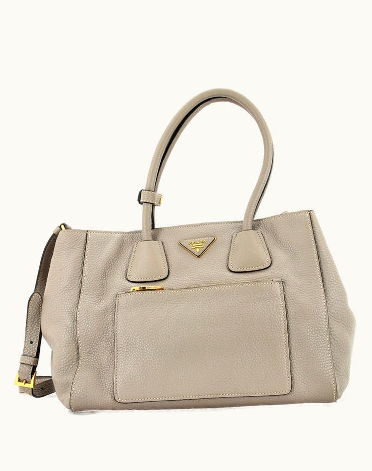 Prada Front Pocket Wing Convertible Tote Vitello Daino Luxury Leather Tote Beige Gold | GLINT