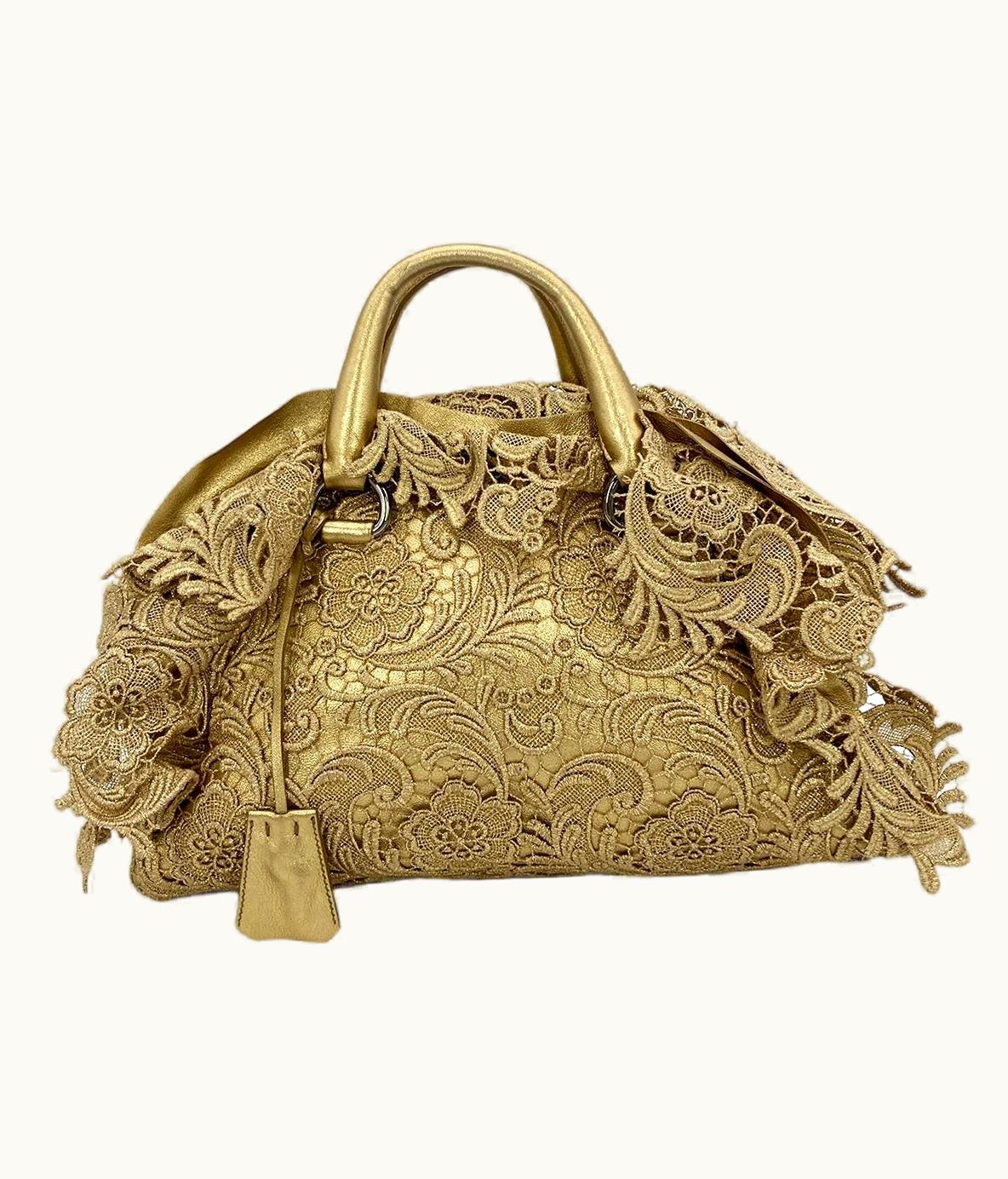 Prada Gold Leather And Lace Pizzo Bag | GLINT