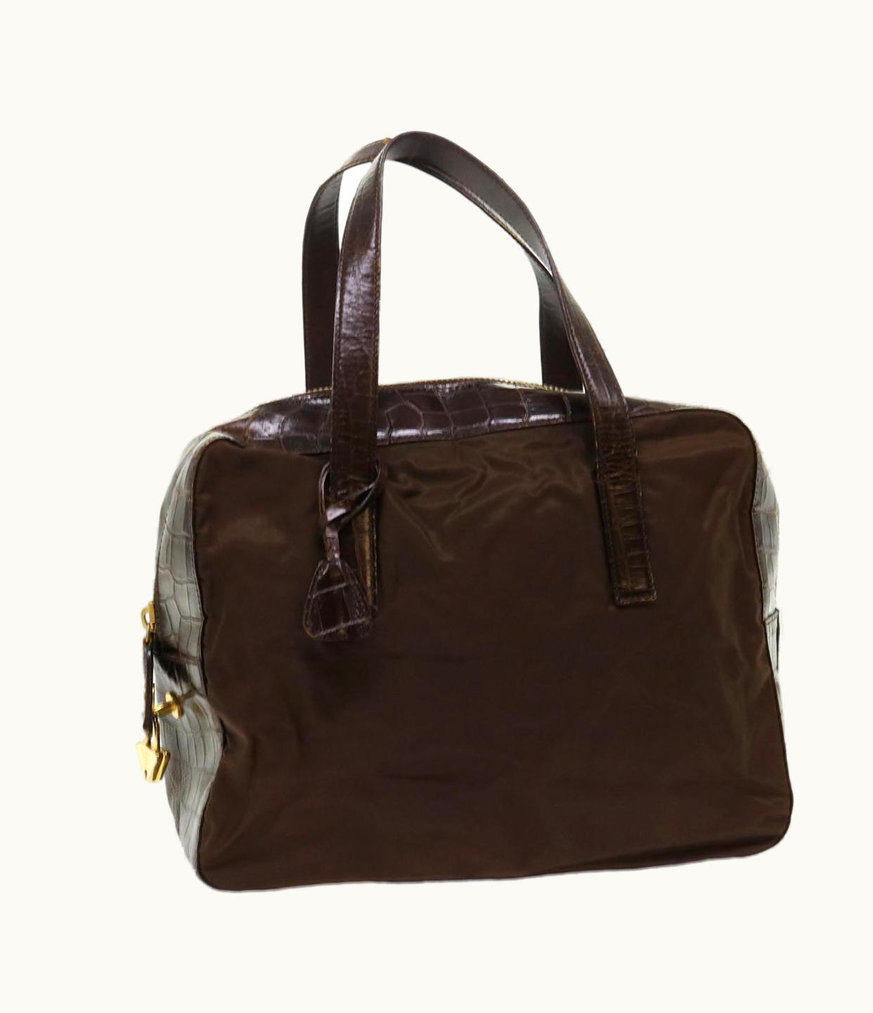 Prada Hand Bag Leather Nylon Brown | GLINT