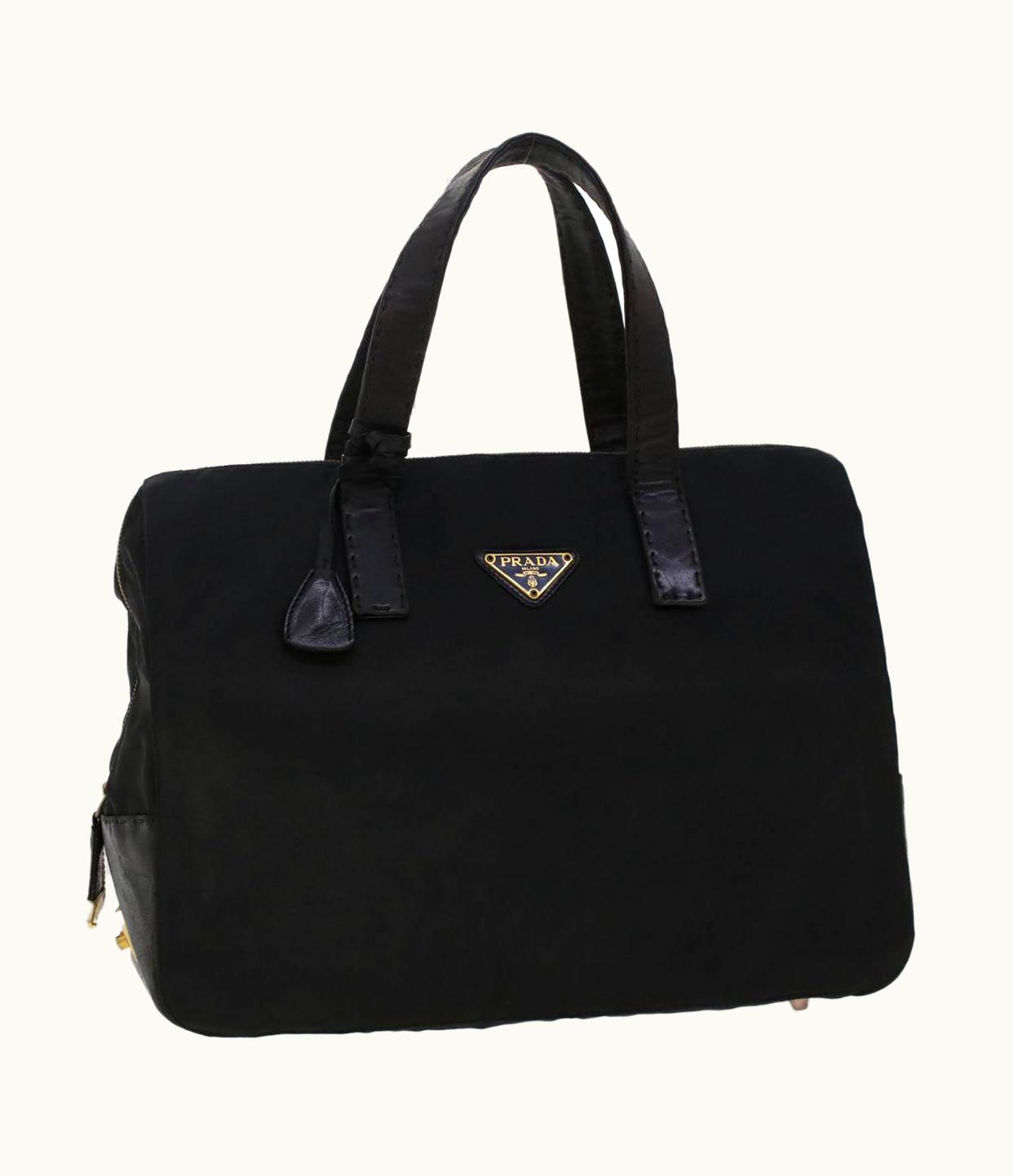 Prada Hand Bag Nylon Leather Black | GLINT