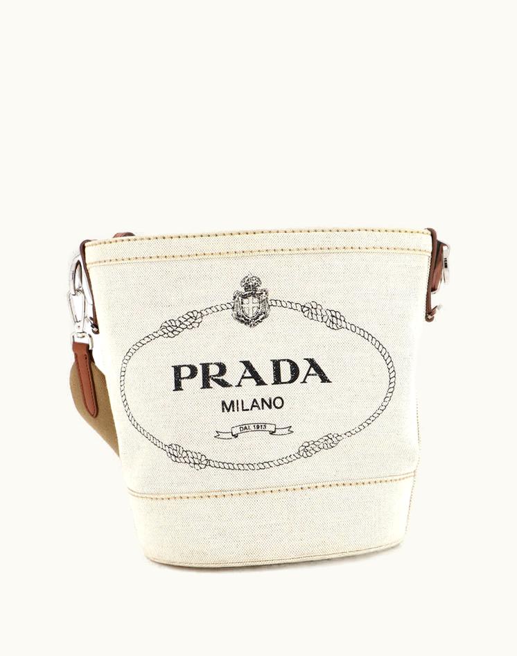 Prada Logo Bucket Bag Canvas With Leather Small | GLINT