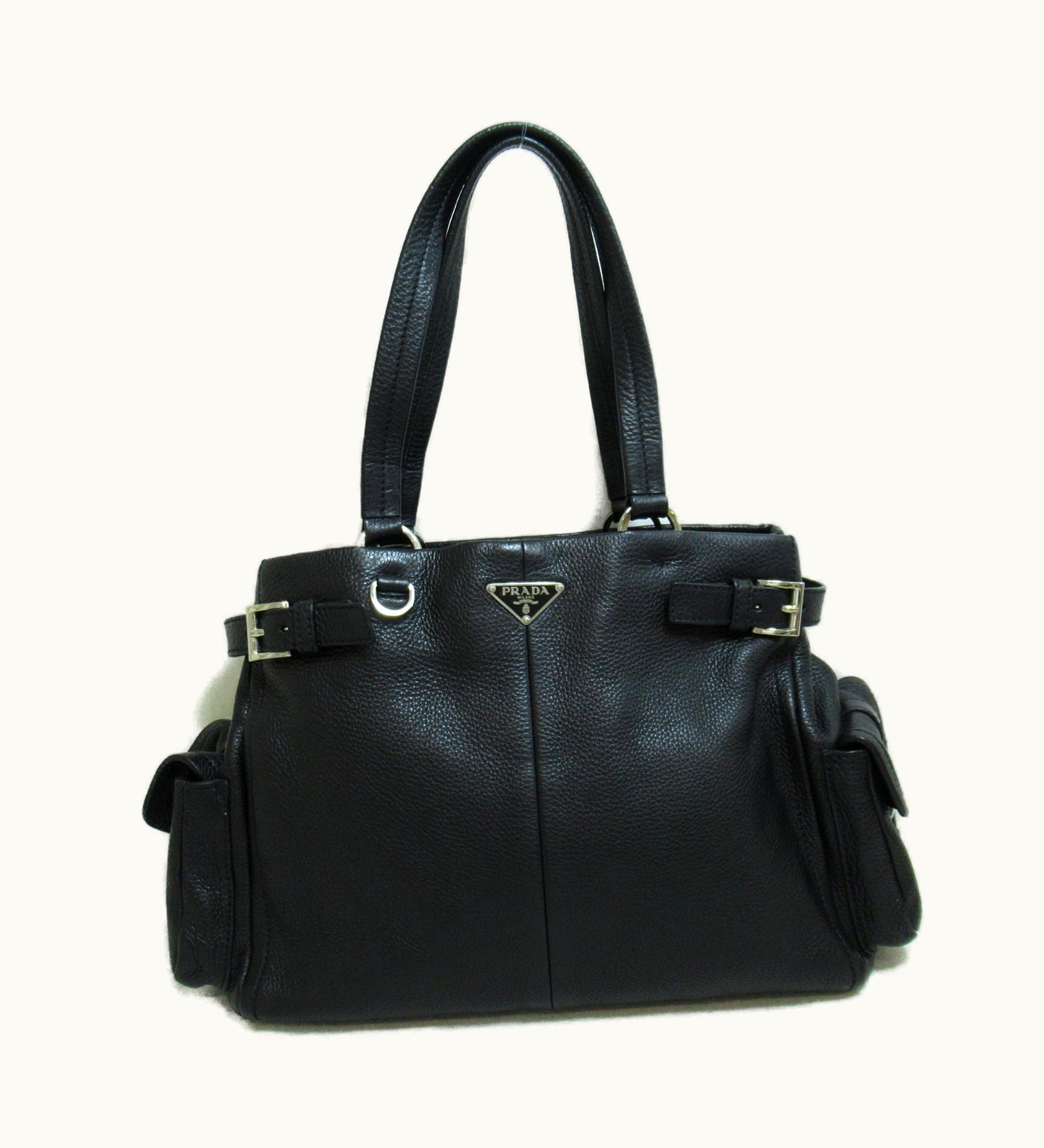 PRADA Model Line Tote Bag Black Leather | GLINT
