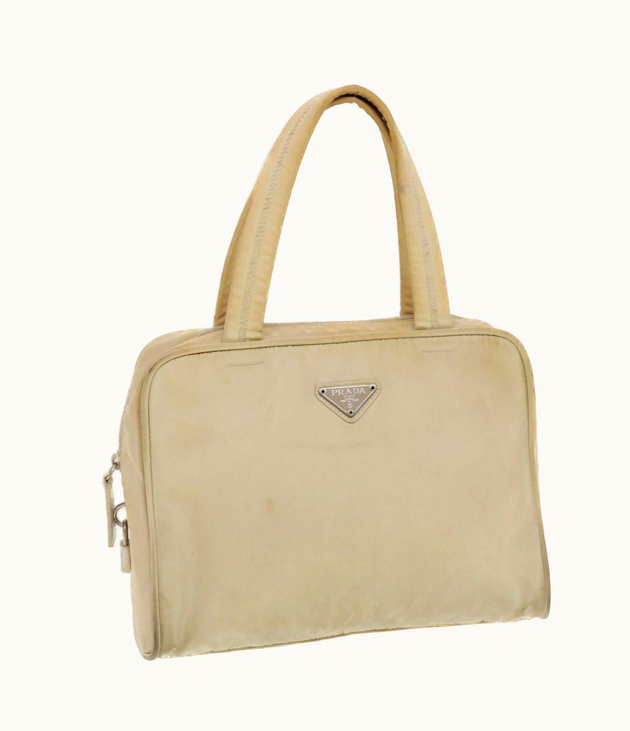 PRADA Nylon Hand Bag Beige | GLINT