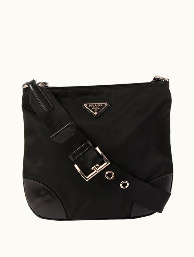 Prada Nylon Logo Plate Shoulder Bag Black | GLINT
