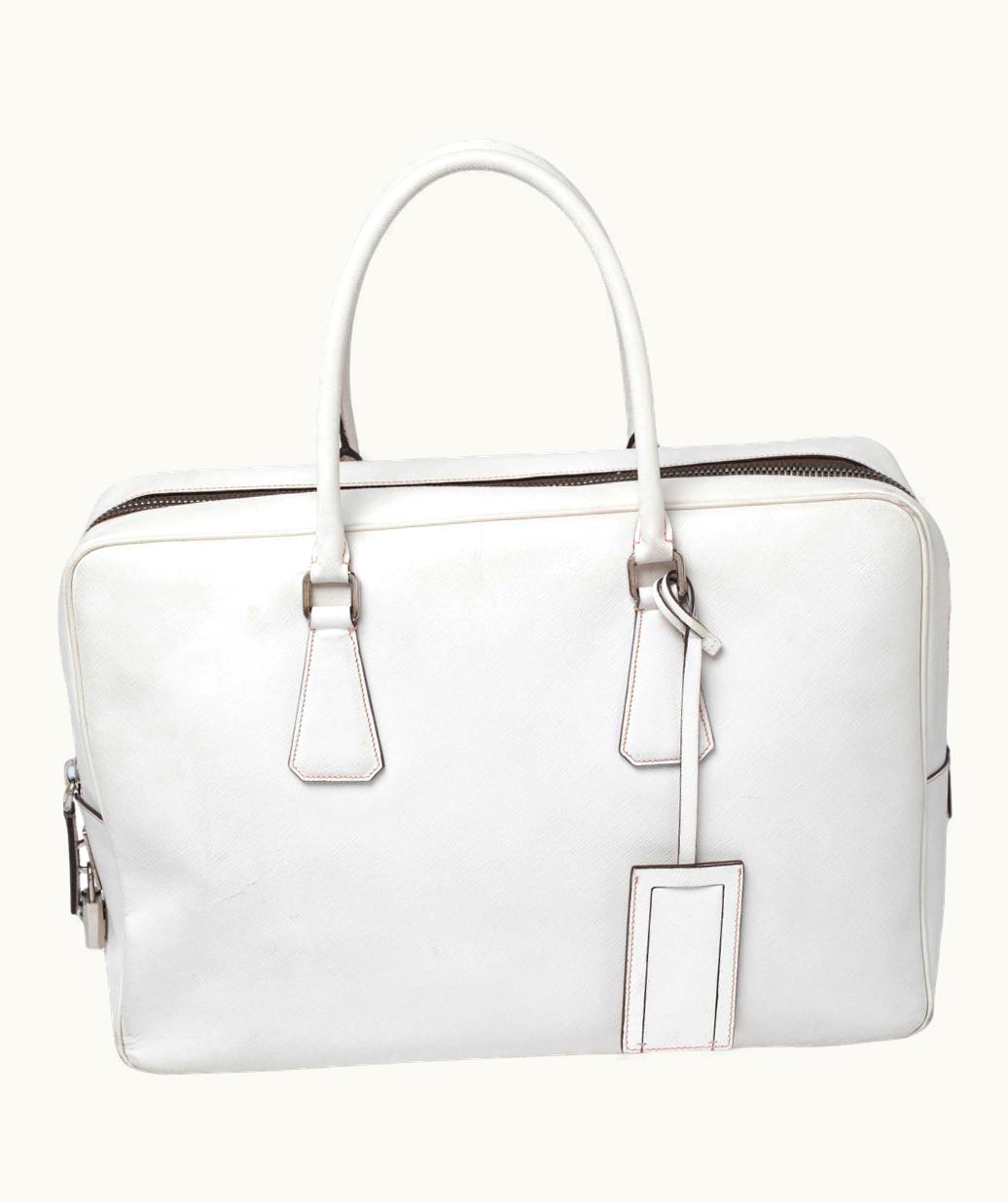 Prada Off-White Saffiano Leather Bauletto Bag | GLINT
