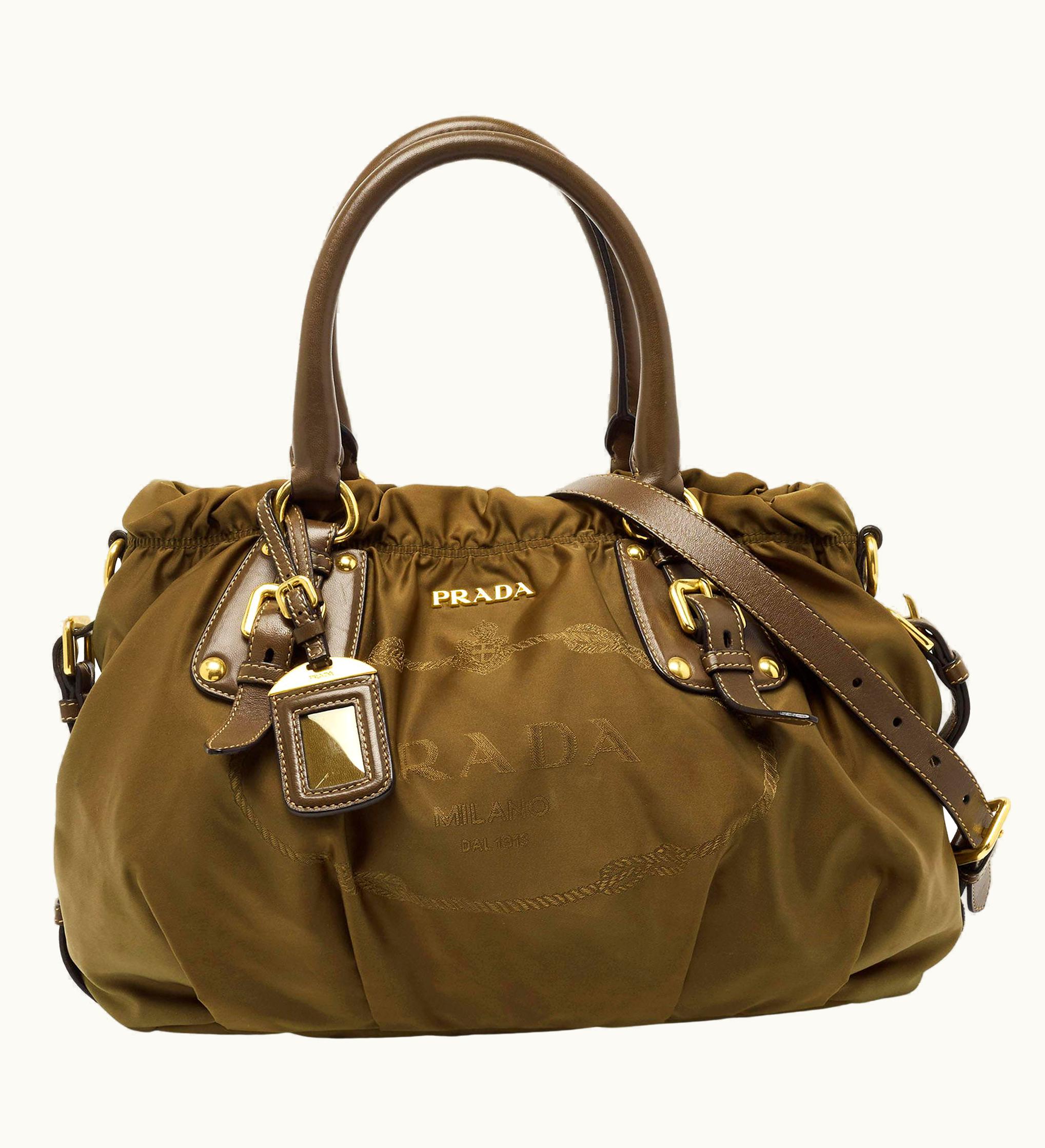 Prada Olive Green Nylon And Leather Satchel | GLINT