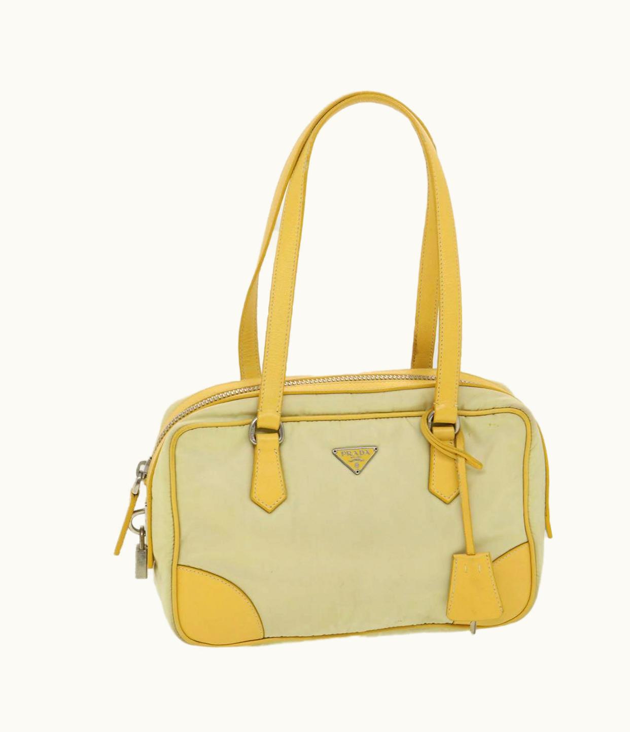 Prada Padlock Nylon Shoulder Bag Yellow | GLINT