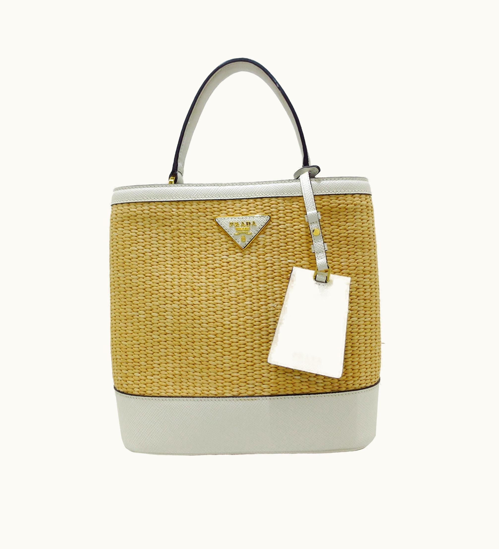 Prada Saffiano-Trimmed Paglia Panier Bag | GLINT