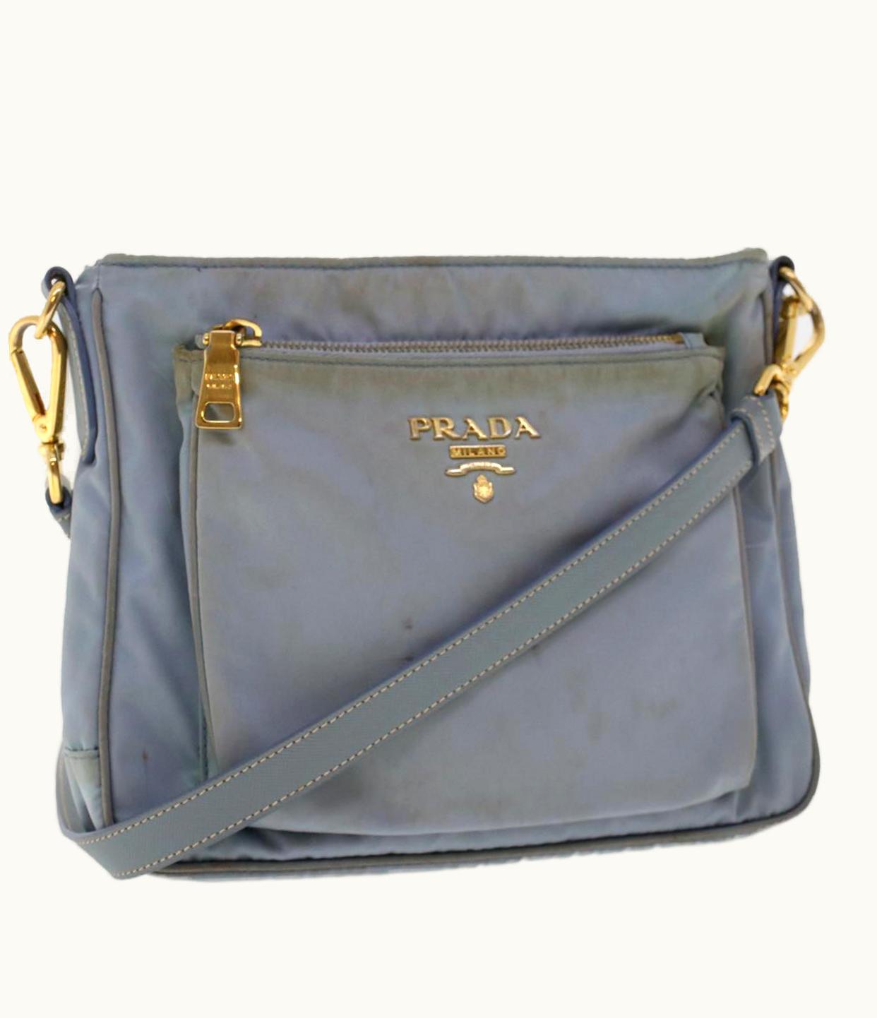 Prada Shoulder Bag Nylon Leather Blue | GLINT