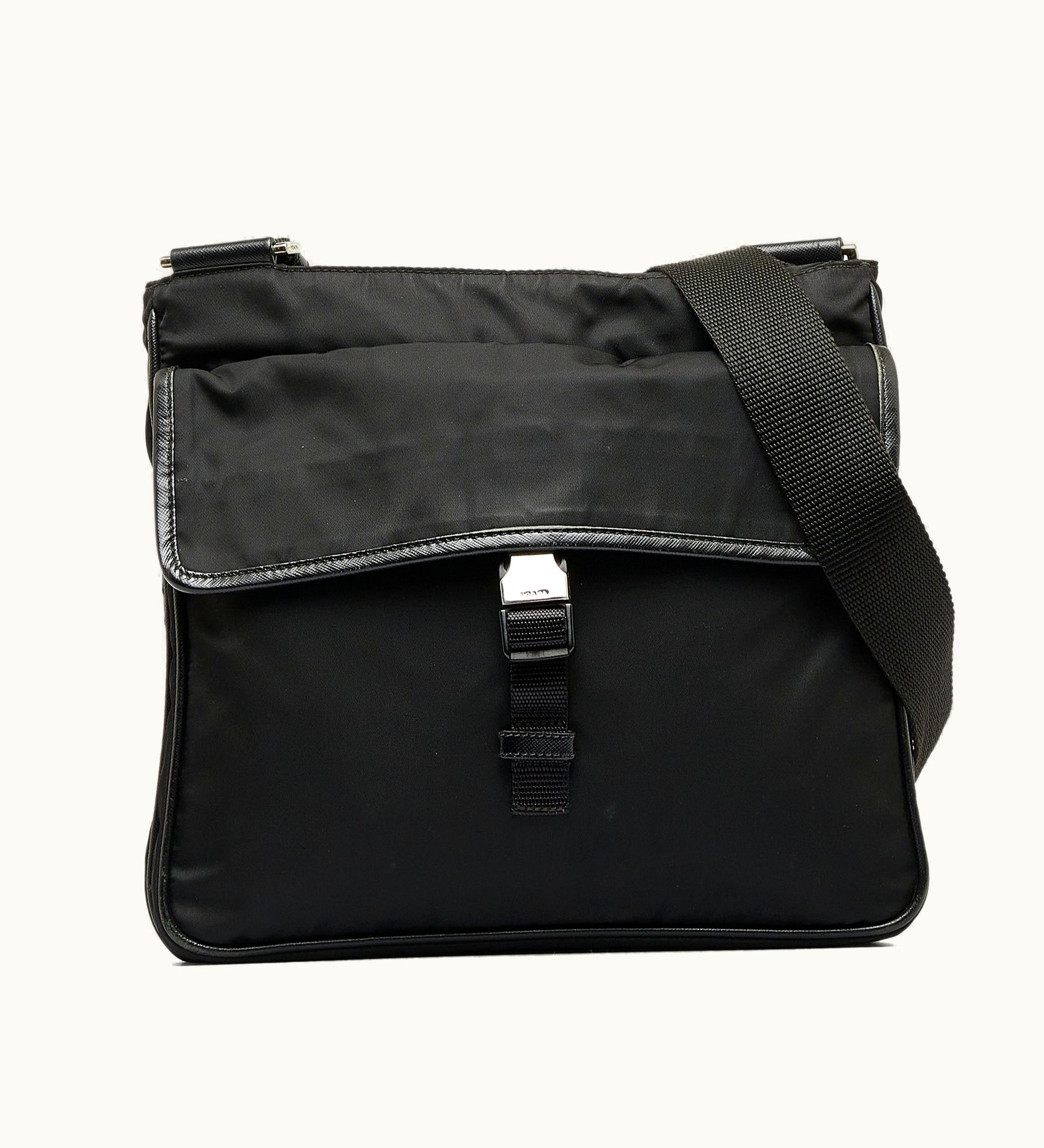 Prada Tessuto Crossbody Bag PRADA01 Nylon Flat Shoulder Strap Front Flap with Buckle Closure Top Zip Closure Exterior Zip Pocket Interior Zip Pocket Black | GLINT