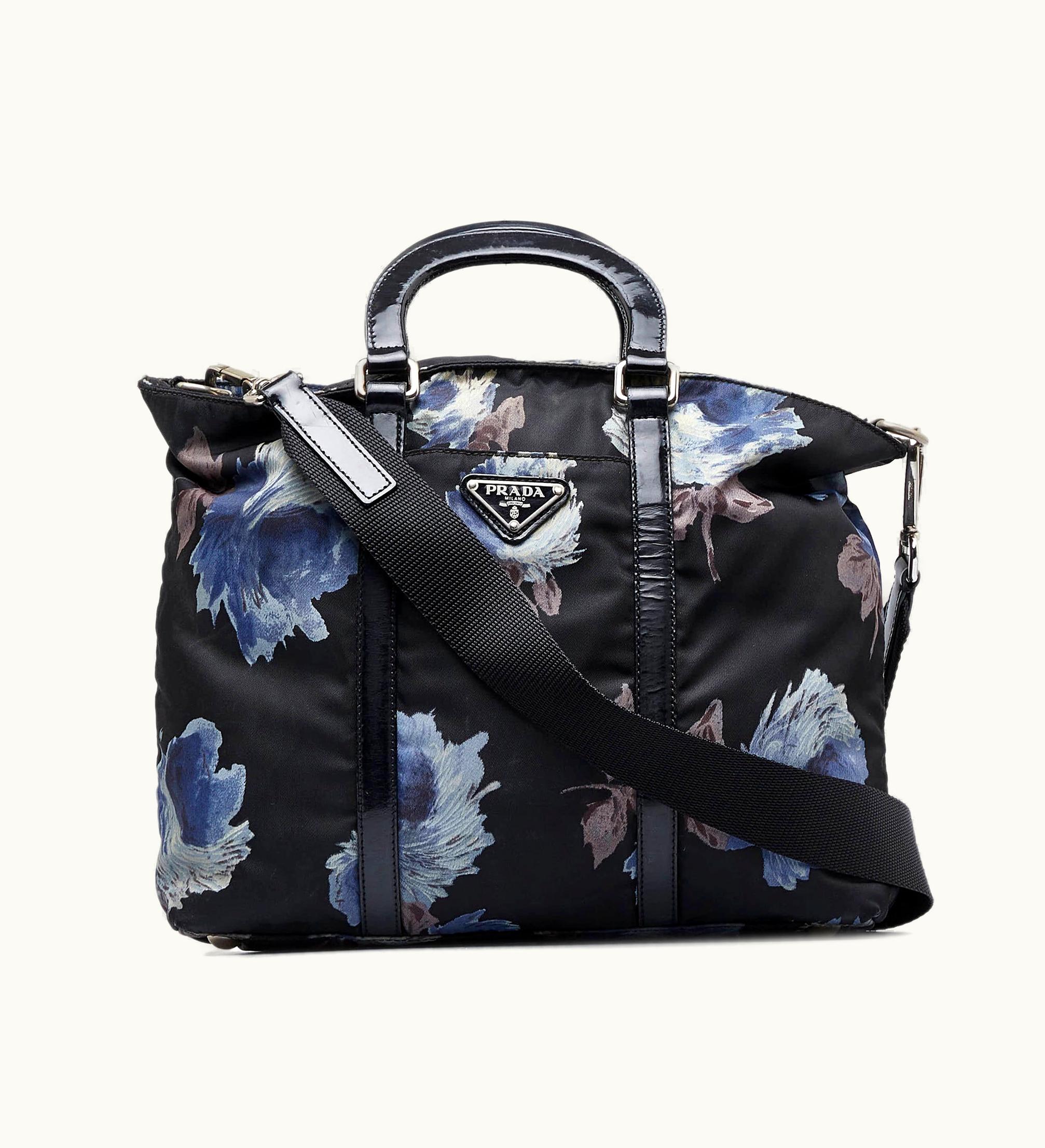 Prada Tessuto Stampato Satchel - Printed Nylon & Leather Trim Compact Satchel Black | GLINT
