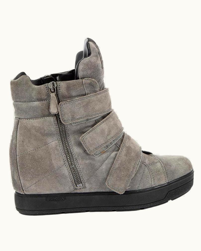 Prada Women' Grey Suede Wedge Trainers | GLINT