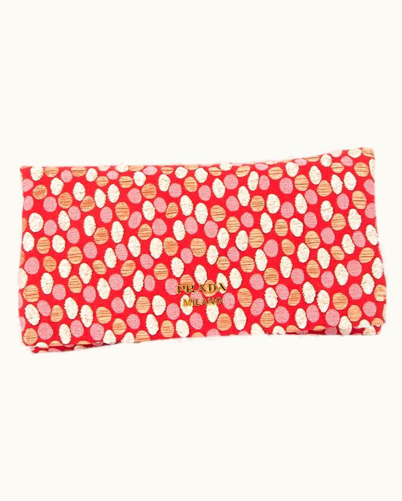 Prada Women' Red Textured Cloth Clutch Wallet | GLINT