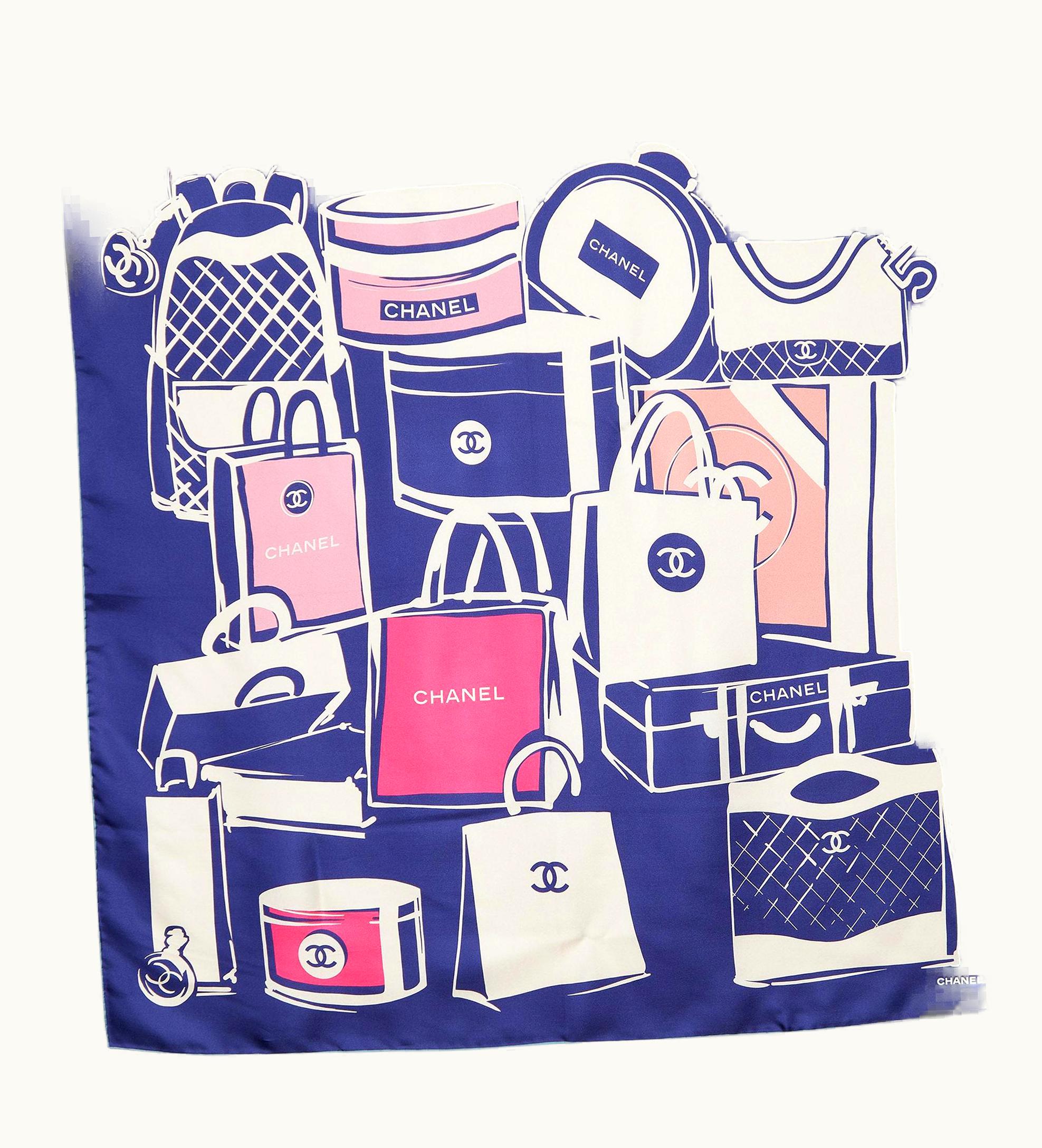 Chanel Navy Blue Bags Print Silk Scarf | GLINT