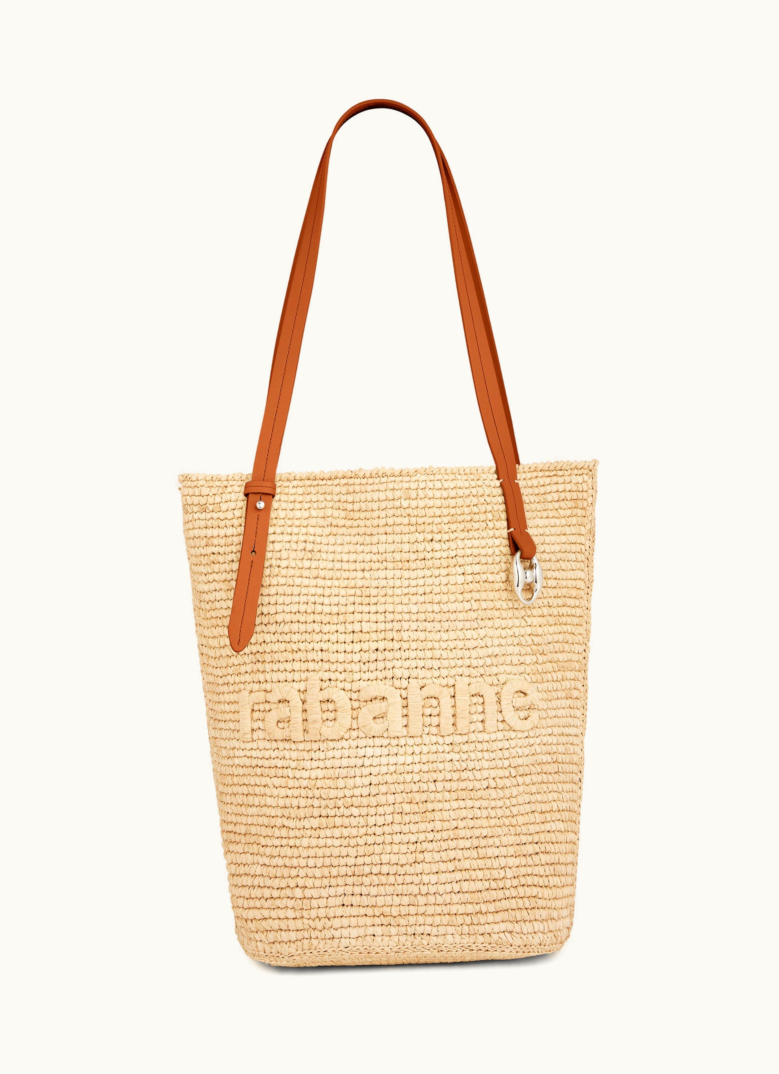 Rabanne Beige Raffia Tote Bag With Logo | GLINT