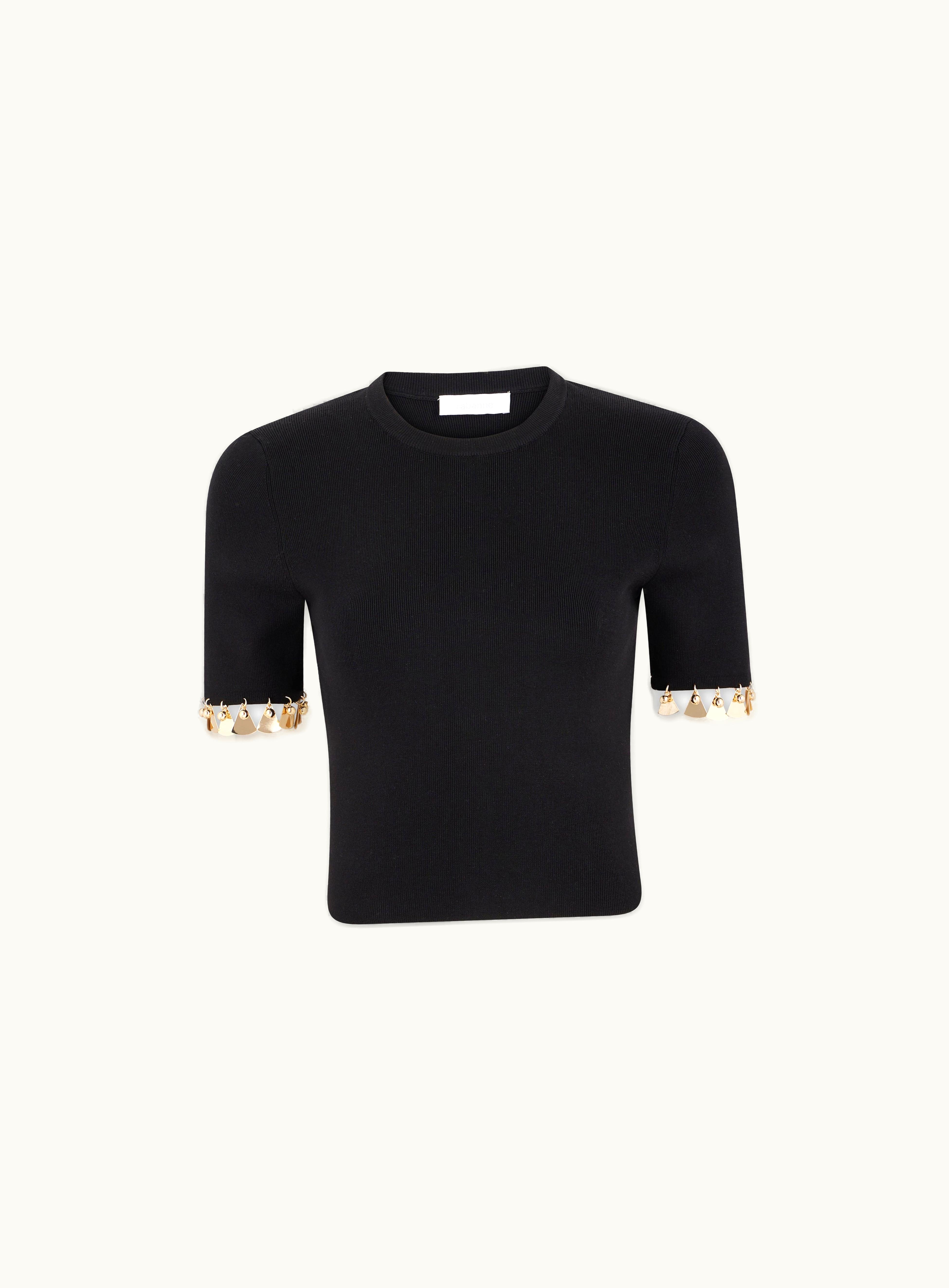 Rabanne Black Top Embellished With Golden Stud | GLINT