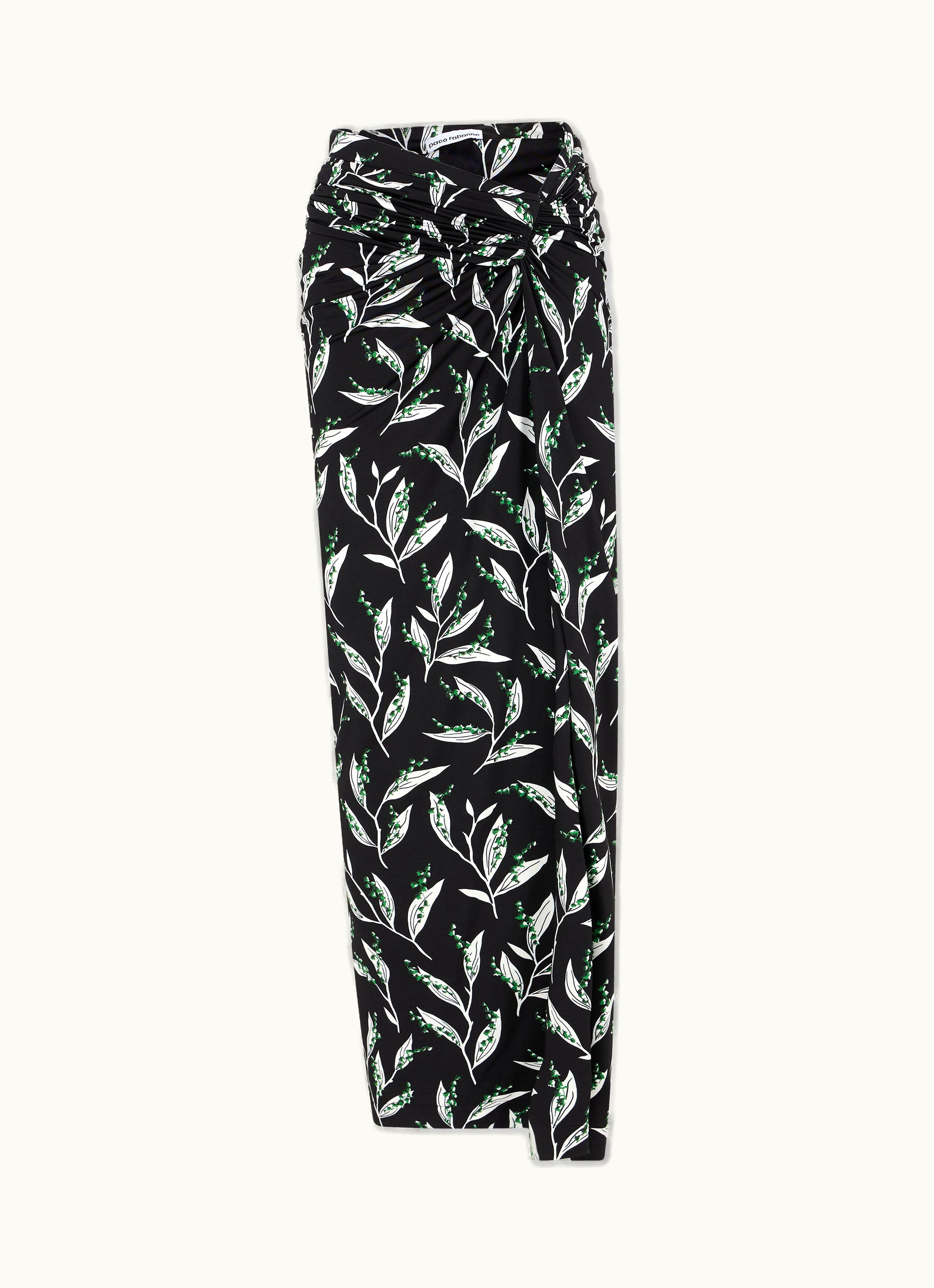Rabanne Long Black Skirt With Thrush Print | GLINT