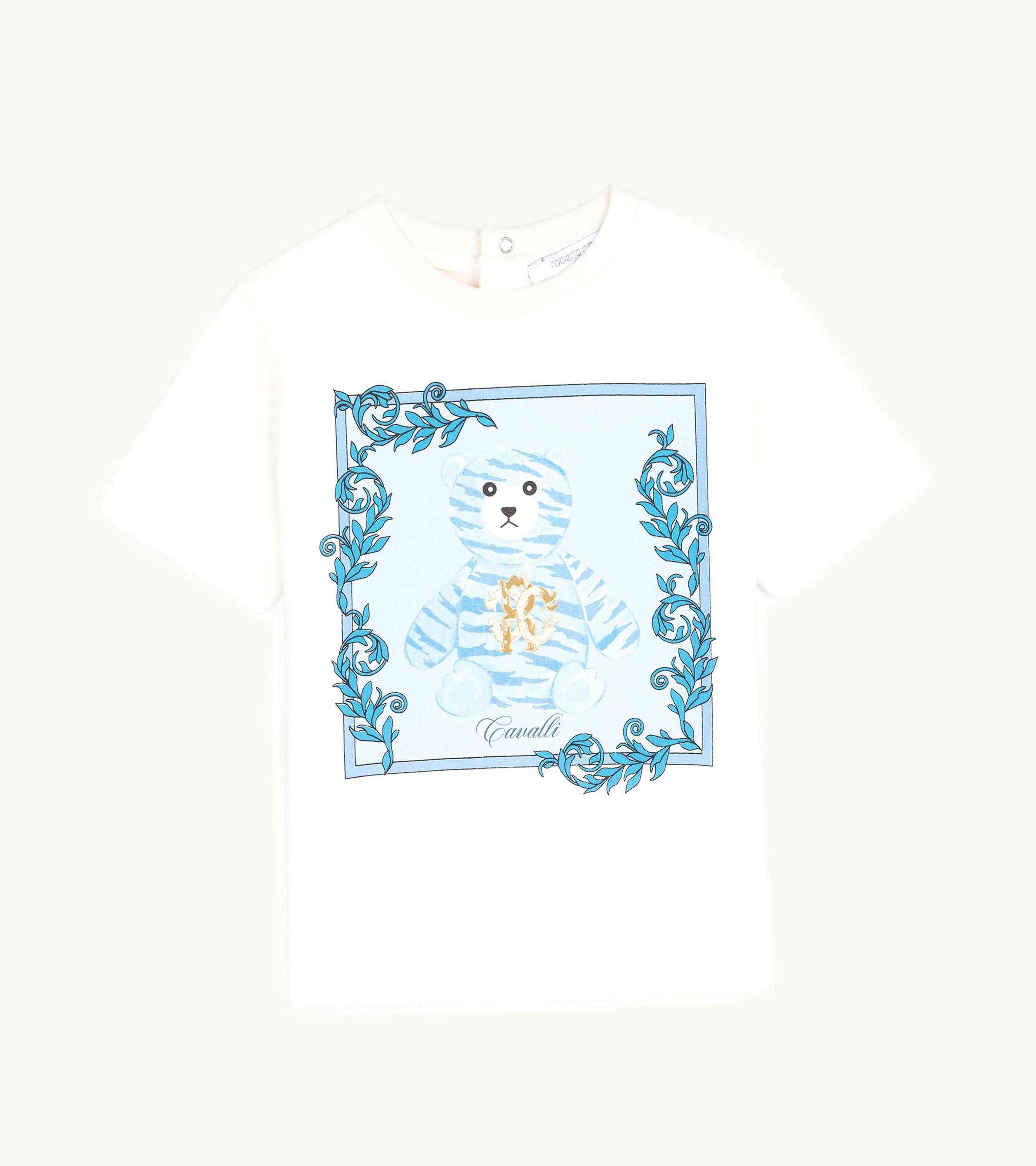 Roberto Cavalli Bear-Print Cotton T-Shirt Milky White | GLINT