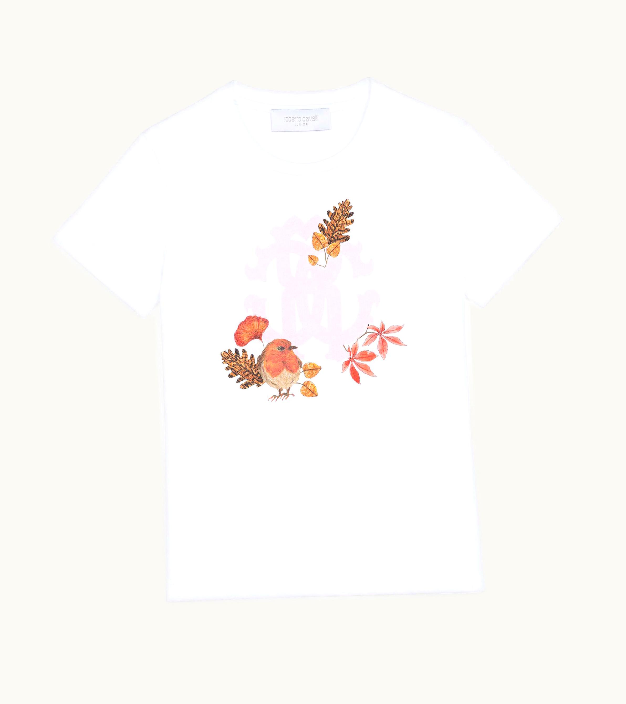 Roberto Cavalli Bird-Print Cotton T-Shirt Optical White | GLINT