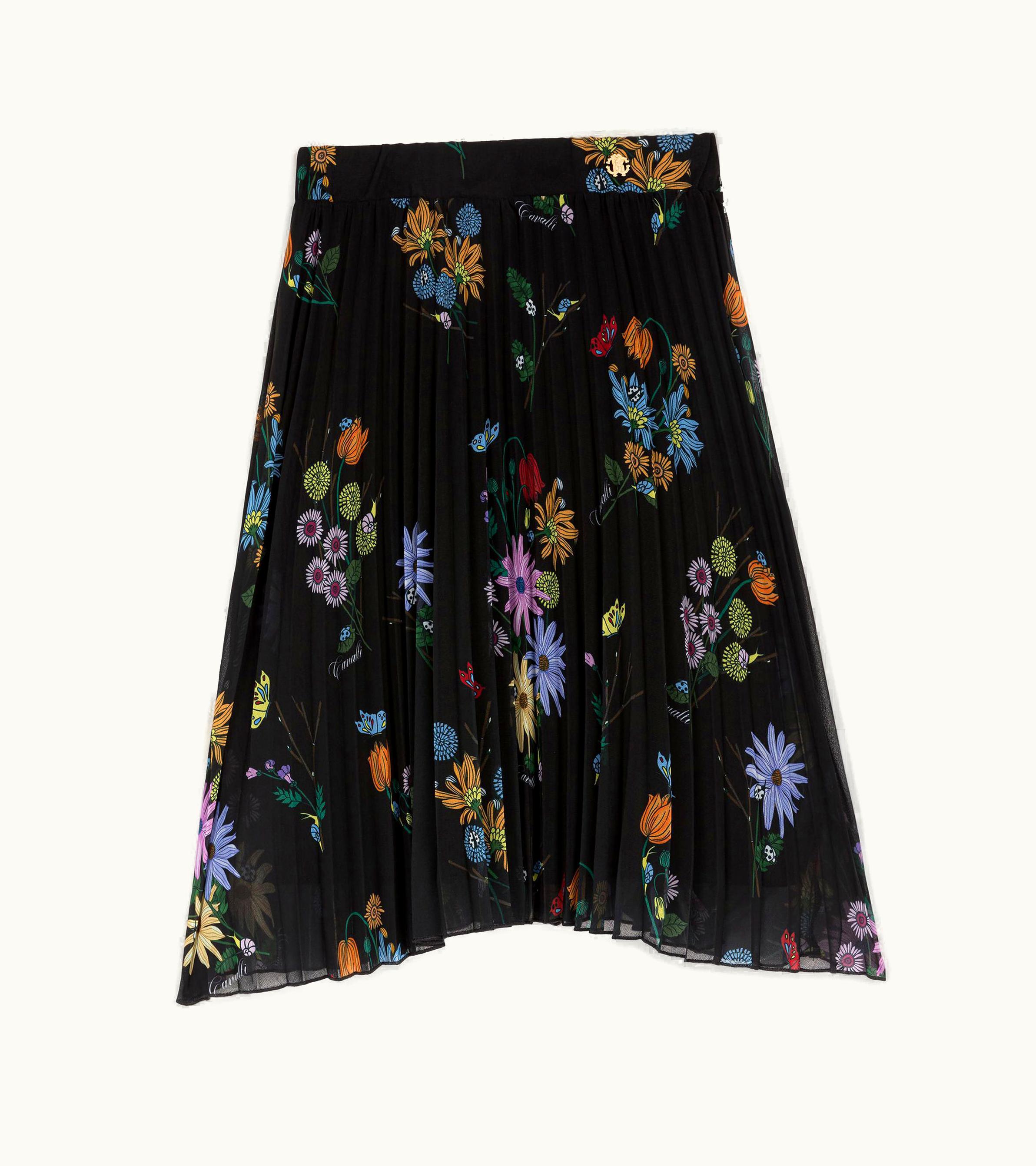 Roberto Cavalli Floral-Print Pleated Skirt Black | GLINT