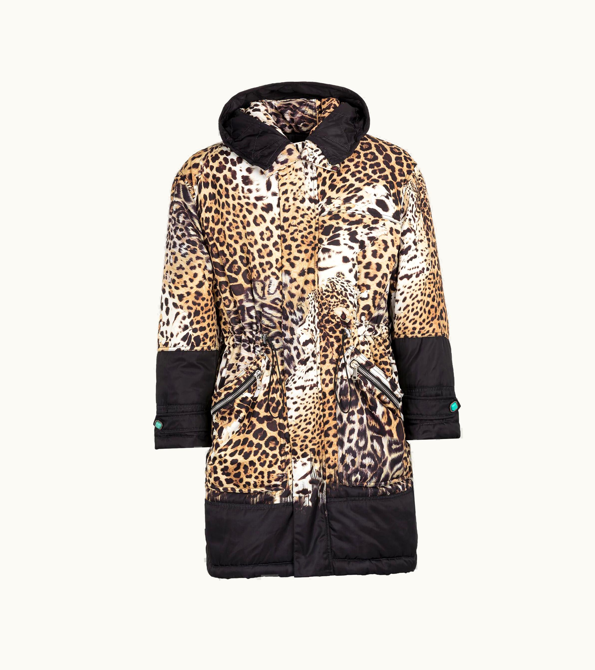 Roberto Cavalli Leopard-Print Padded Coat Black | GLINT