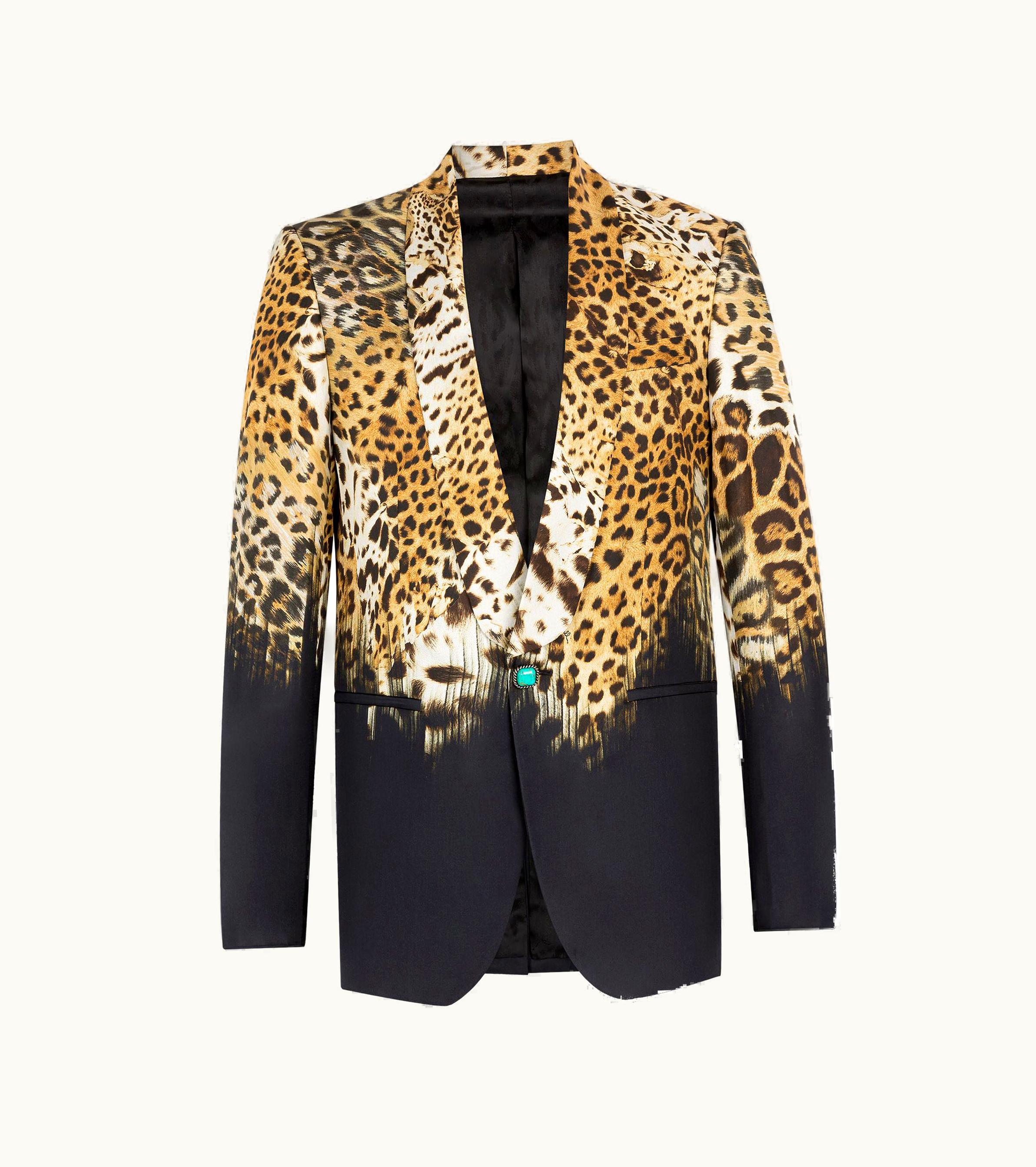 Roberto Cavalli Leopard-Print Silk Blazer Black | GLINT