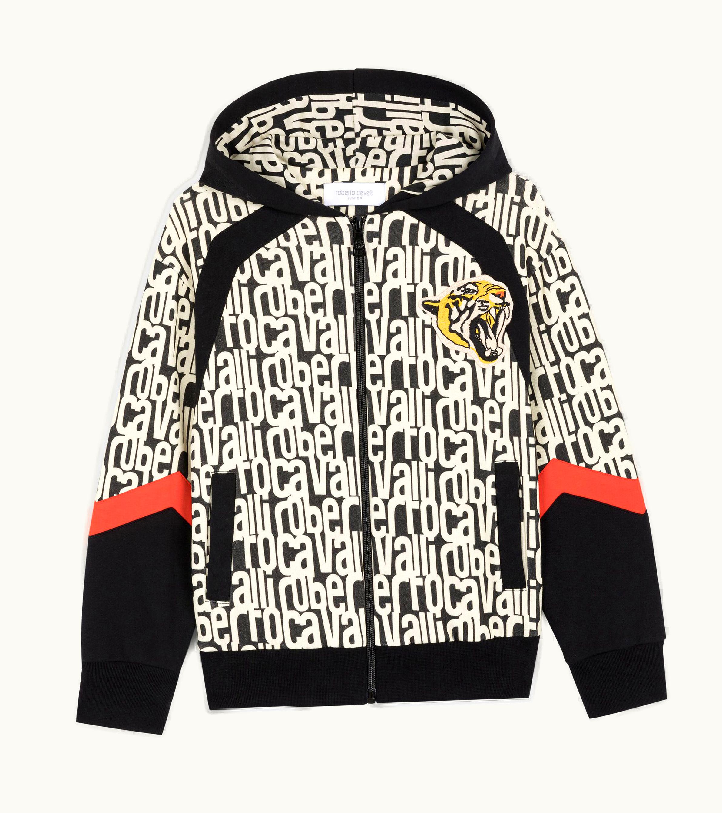 Roberto Cavalli Logo-Print Cotton Hoodie Black / Beige | GLINT