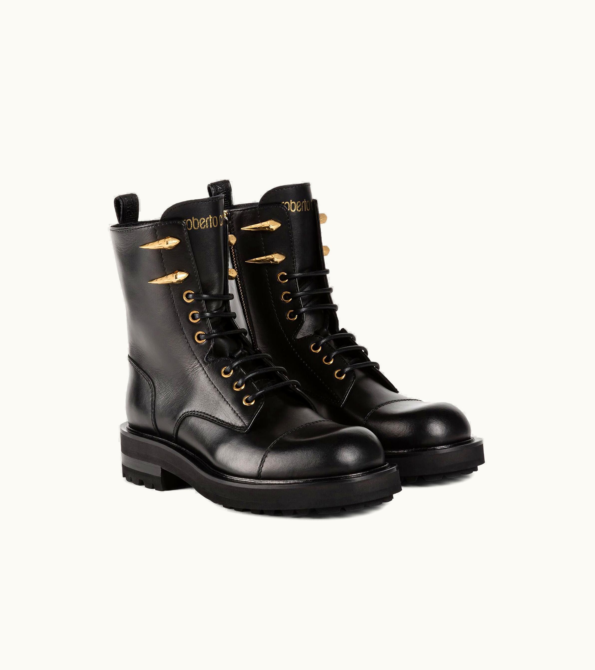 Roberto Cavalli Logo-print Leather Boots Black | GLINT