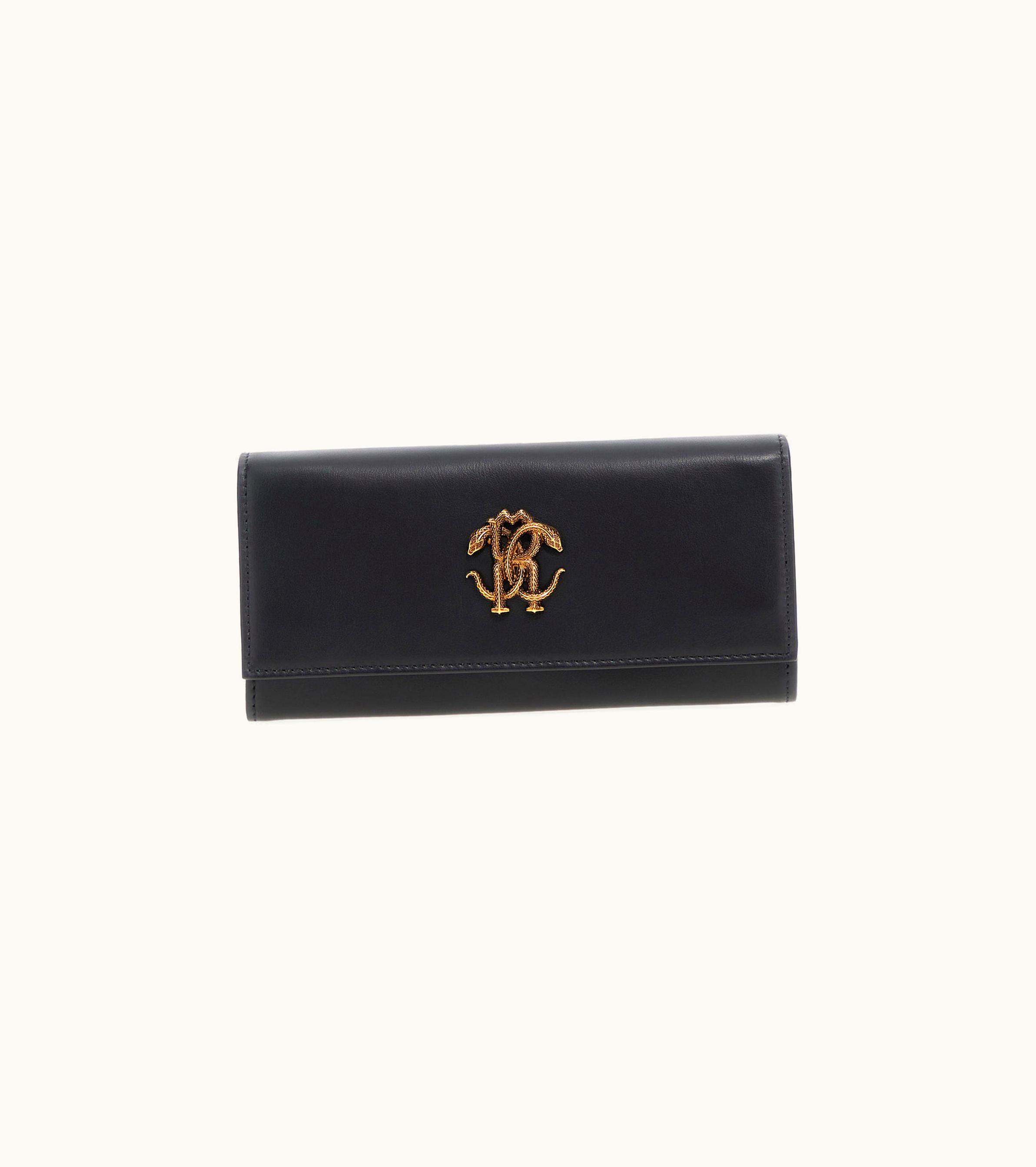 Roberto Cavalli Monogram RC Black Leather Wallet | GLINT