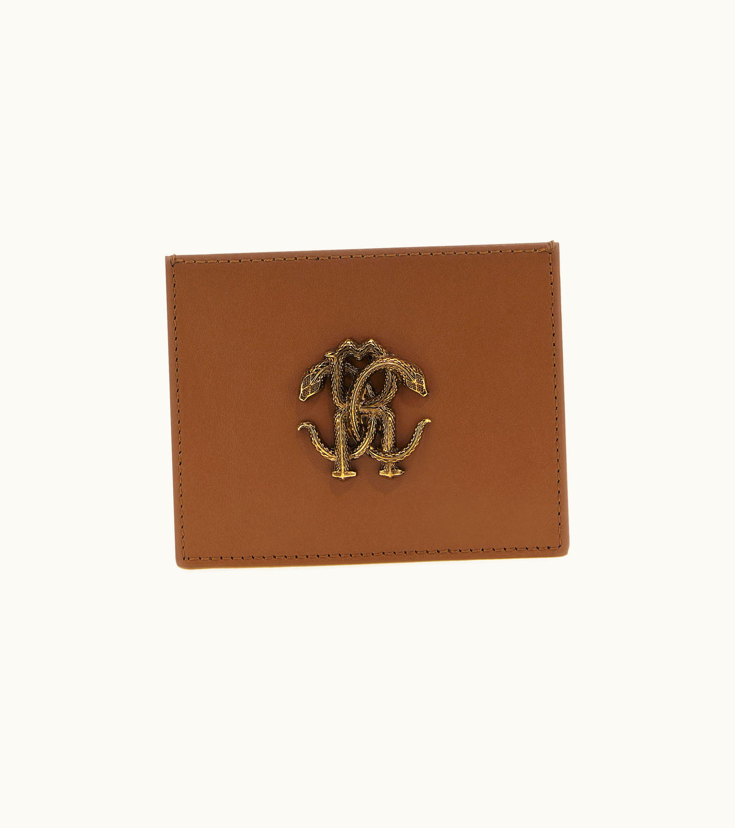 Roberto Cavalli Monogram RC Brown Leather Cardholder | GLINT