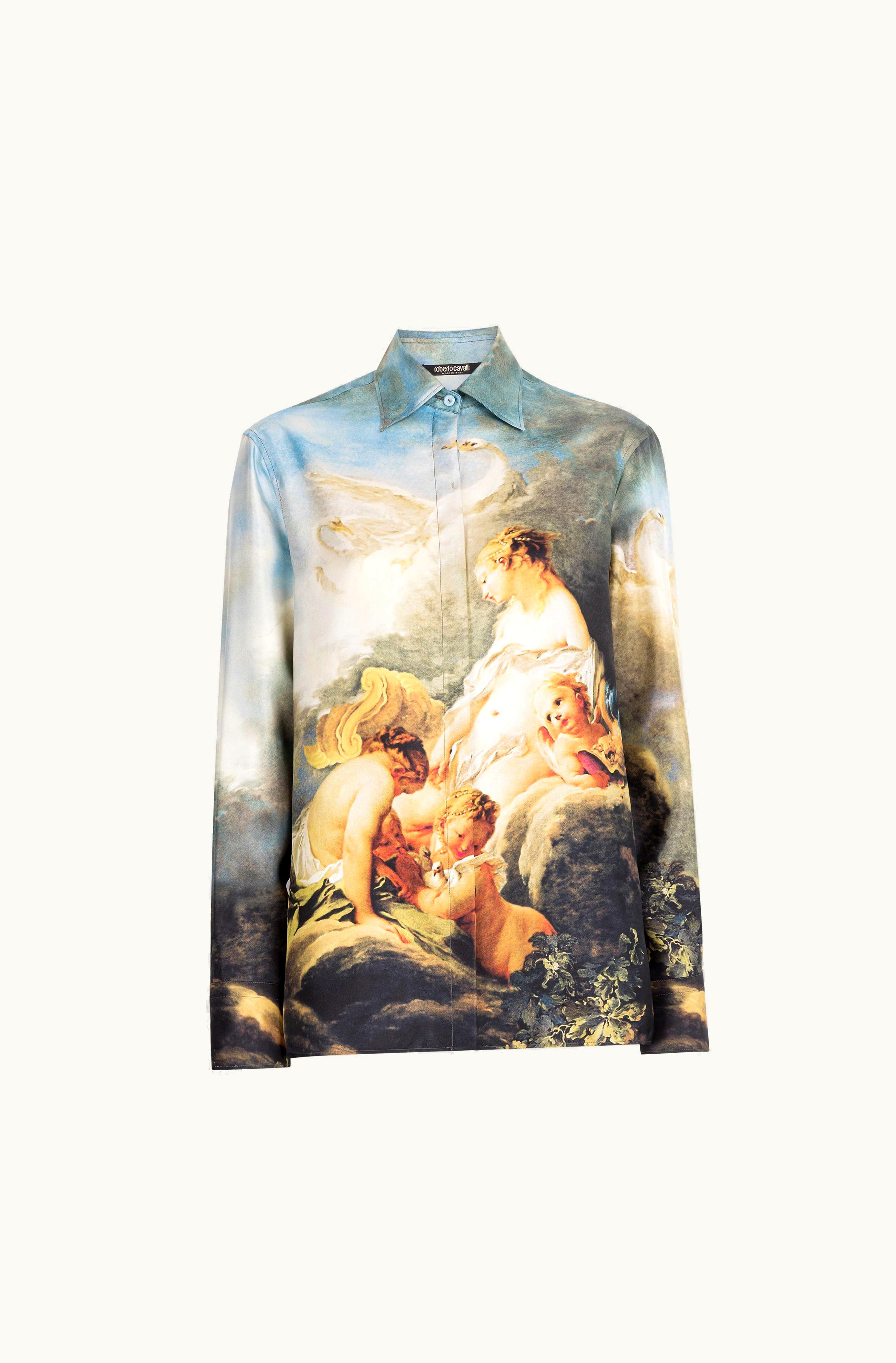 Roberto Cavalli Painting-Print Silk Shirt Light Blue | GLINT