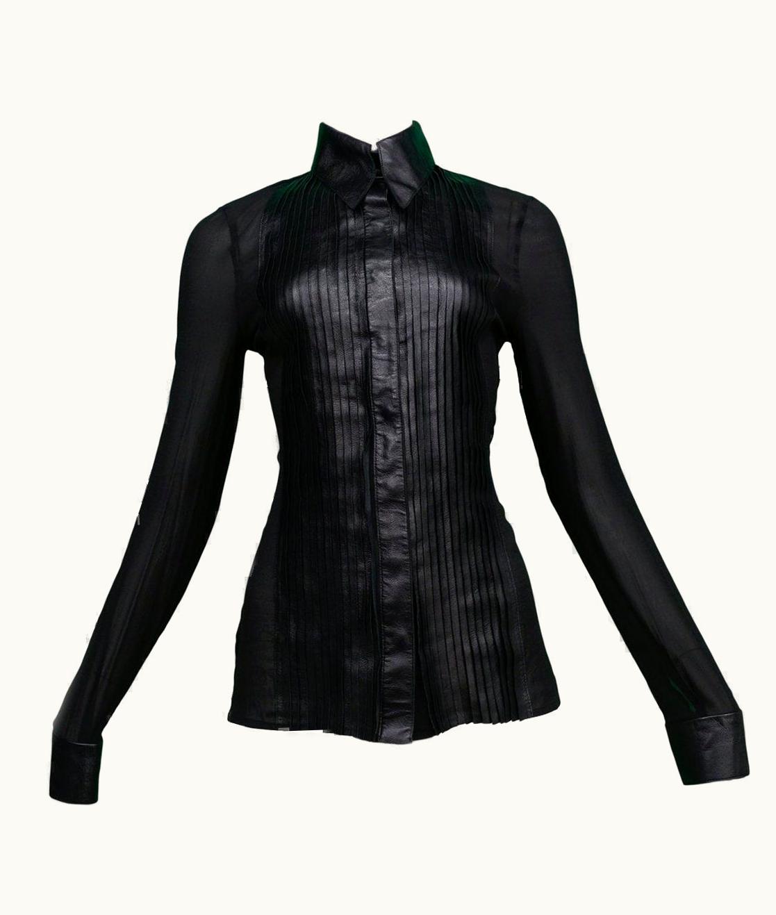 Jitrois Black Leather And Sheer Tuxedo Shirt | GLINT