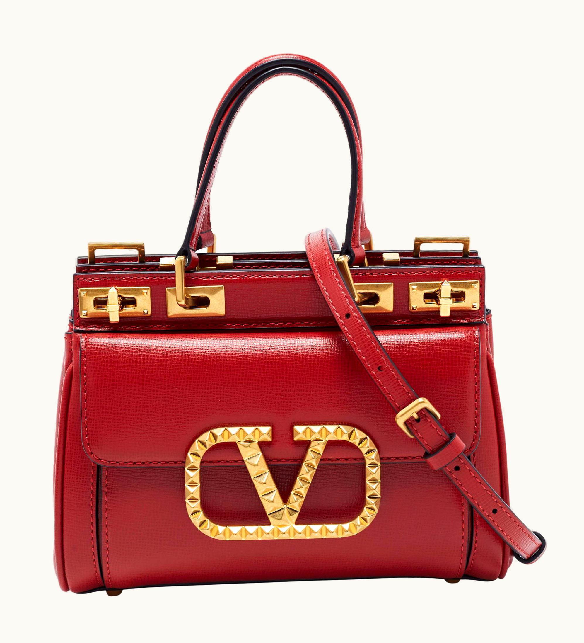 Valentino Red Leather Small Rockstud Alcove Tote | GLINT