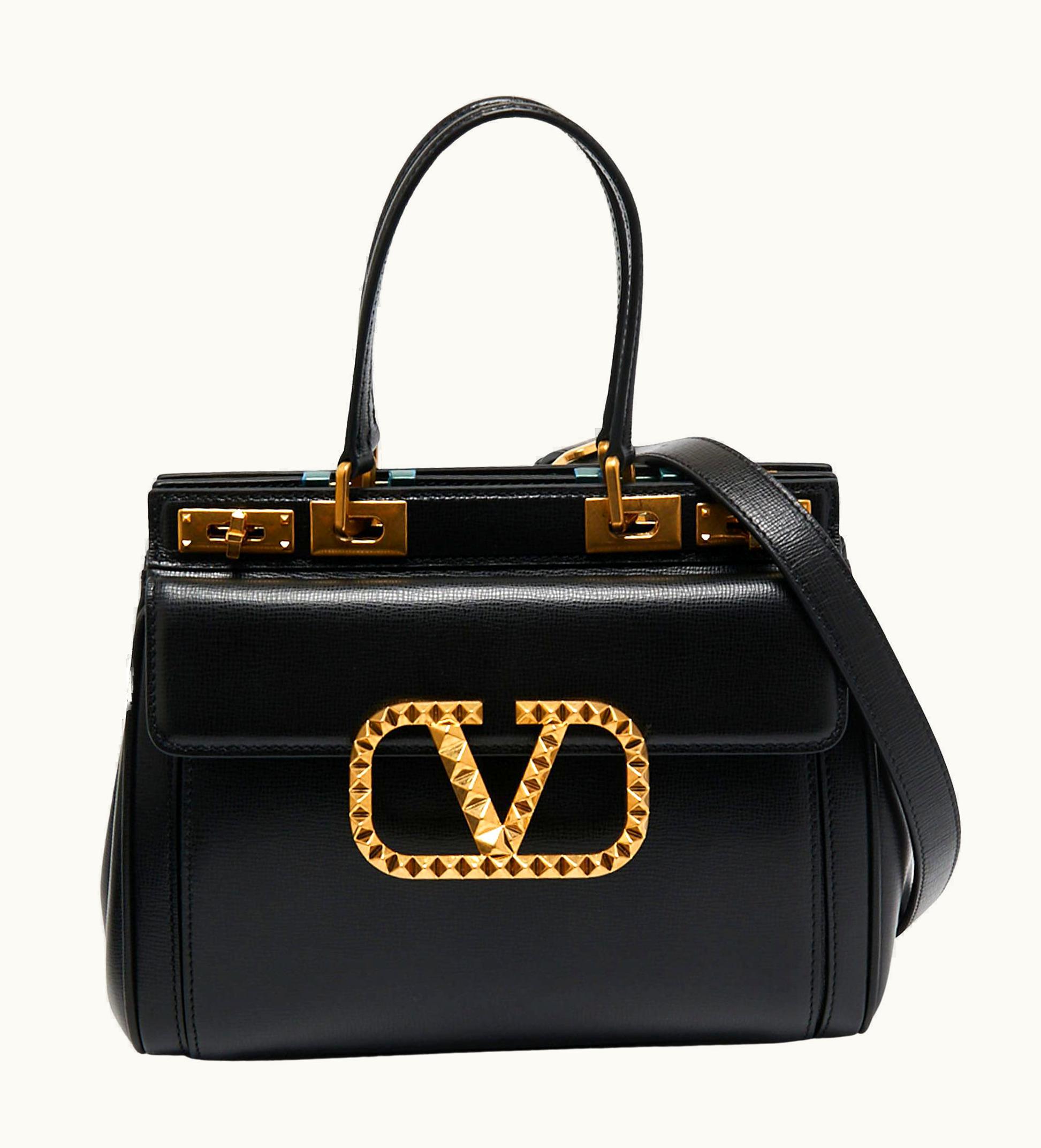 Valentino Black Leather Medium Rockstud Alcove Tote | GLINT