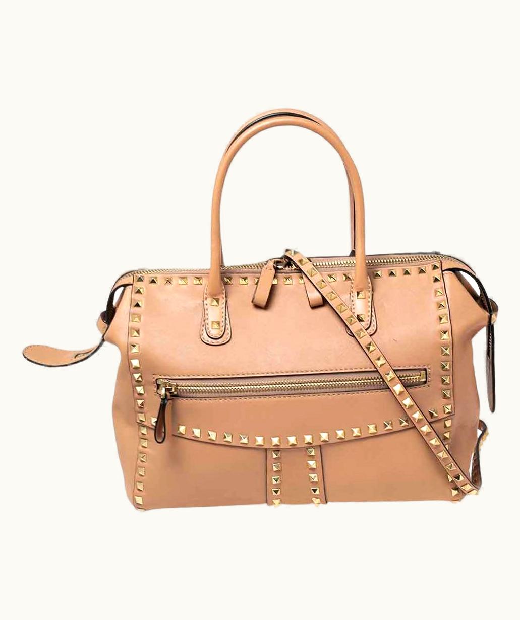 Valentino Dusty Pink Leather Rockstud Zip Satchel | GLINT